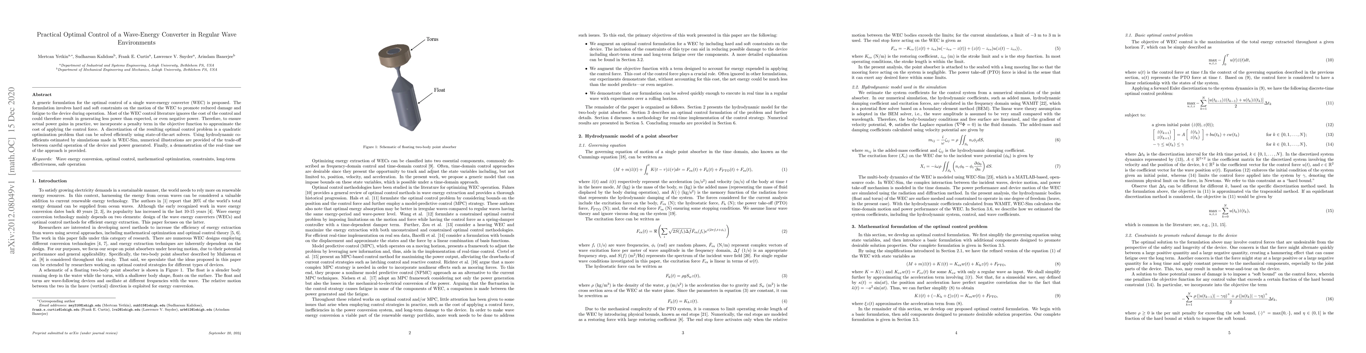 Researchers developed an optimal control strategy for wave-energy converters to minimize damage while maximizing power generation in regular wave environments. Their approach incorporates a penalty term to approximate the cost of control forces, allowing for efficient real-time operation.