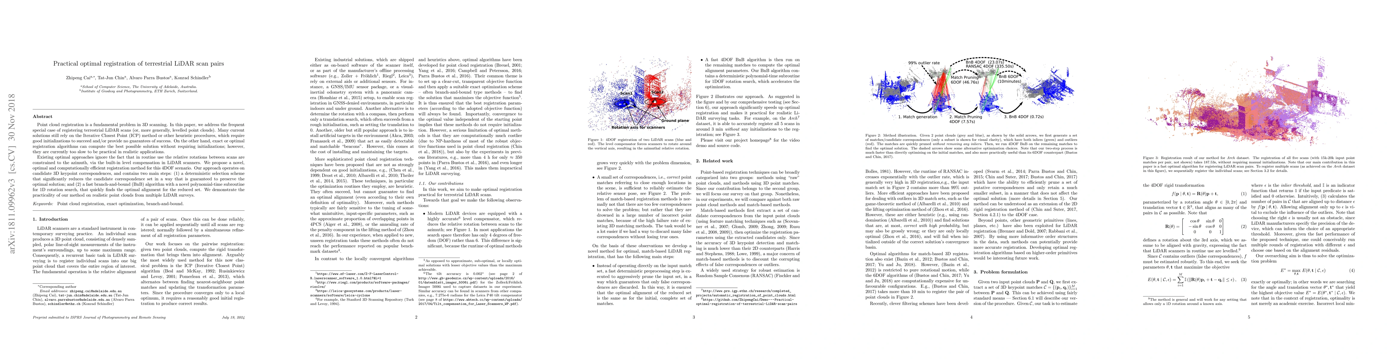 This paper proposes a novel, optimal, and computationally efficient method for registering terrestrial LiDAR scans, leveraging the constraint of azimuth rotations. The method includes a deterministic selection scheme to reduce candidate correspondences and a fast branch-and-bound algorithm with a 1D rotation search to find the optimal alignment, demonstrating practical applicability on real LiDAR data.