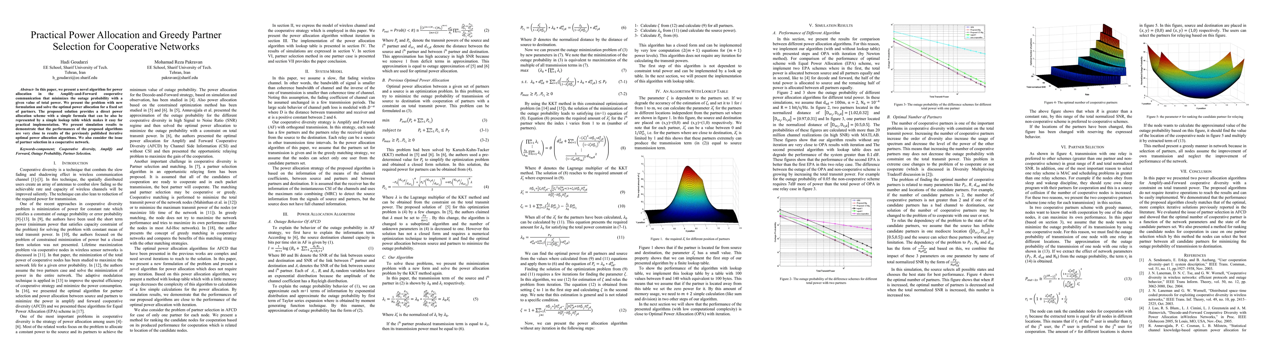 This paper introduces a novel algorithm for power allocation in Amplify-and-Forward cooperative networks that minimizes outage probability under a fixed power constraint. The proposed solution offers a straightforward power allocation formula and a simple lookup table, demonstrating performance comparable to iterative optimal algorithms, while also addressing partner selection in cooperative networks.