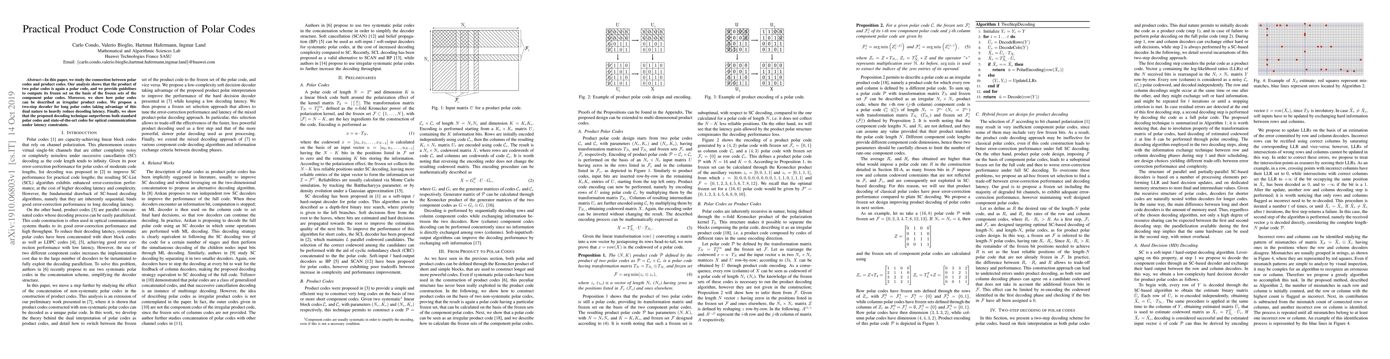 This paper explores the construction of polar codes through product codes, demonstrating that the product of two polar codes remains a polar code. It proposes a two-step decoder that leverages this dual nature to significantly reduce decoding latency, outperforming standard polar codes and state-of-the-art codes for optical communications under latency constraints.
