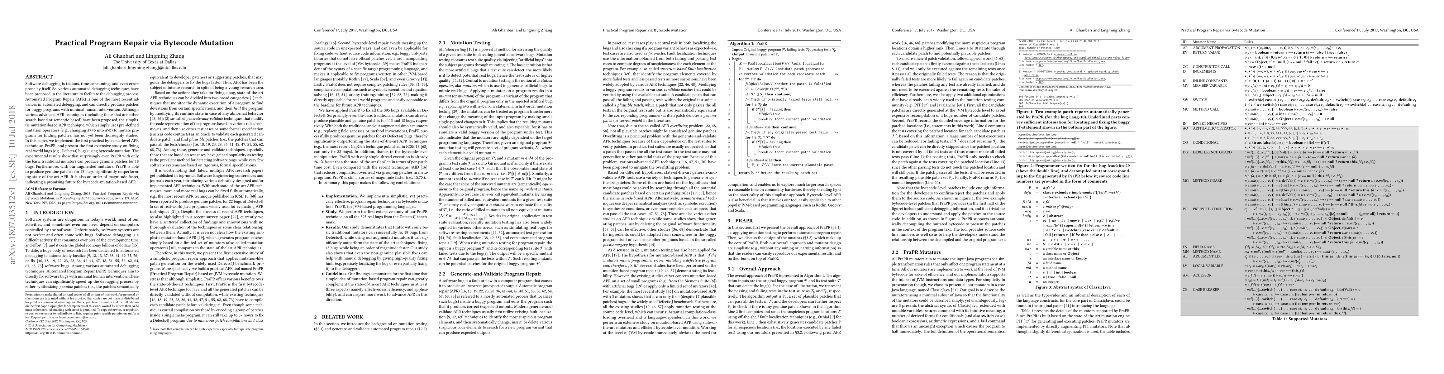 This paper introduces PraPR, a practical bytecode-level automated program repair technique using bytecode mutation. Experimental results show that PraPR can fix 18 bugs with basic mutators and 43 bugs with augmented mutators, outperforming existing methods and being significantly faster.