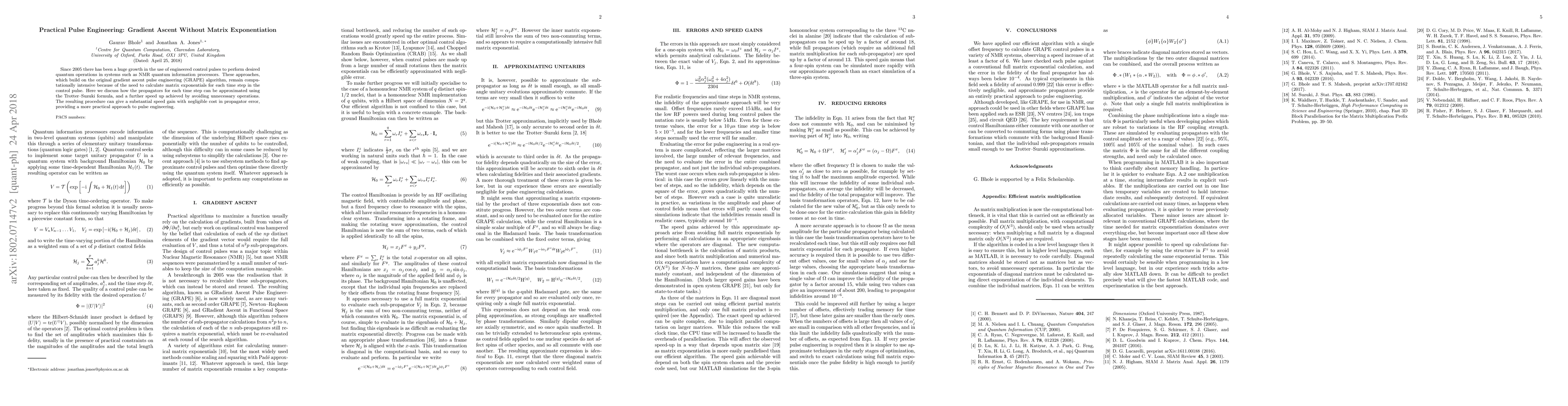 This paper proposes an efficient method for gradient ascent pulse engineering in quantum systems by approximating propagators using the Trotter-Suzuki formula, thus avoiding computationally intensive matrix exponentiation, leading to significant speed improvements with minimal loss in accuracy.