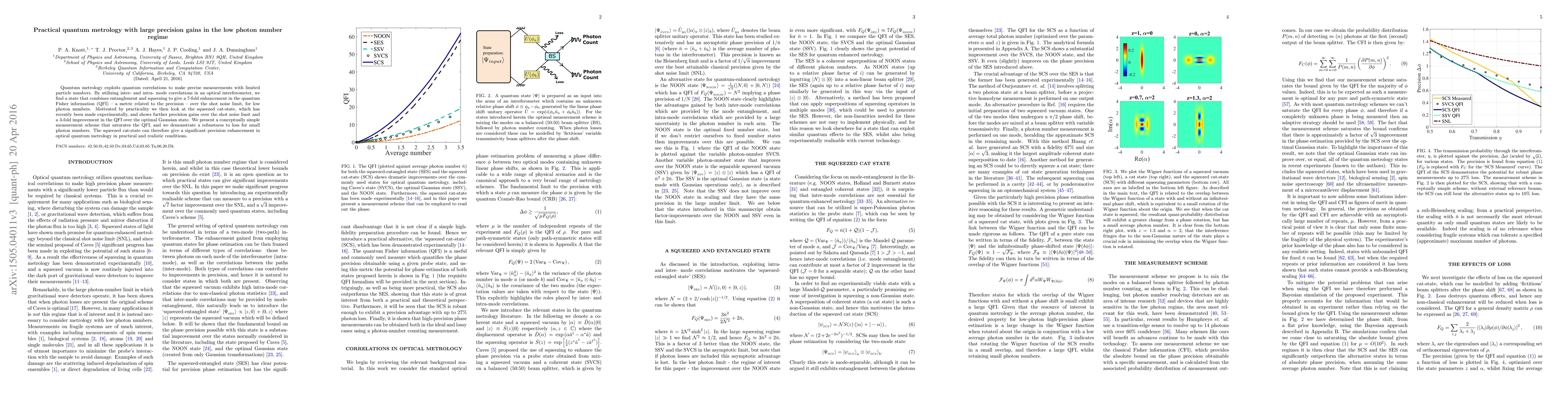 Quantum metrology exploits quantum correlations to make precise measurements with limited particle numbers. By utilizing inter- and intra- mode correlations in an optical interferometer, we find a state that combines entanglement and squeezing to give a 7-fold enhancement in the quantum Fisher information (QFI) -- a metric related to the precision -- over the shot noise limit, for low photon numbers. Motivated by practicality we then look at the squeezed cat-state, which has recently been made experimentally, and shows further precision gains over the shot noise limit and a 3-fold improvement in the QFI over the optimal Gaussian state. We present a conceptually simple measurement scheme that saturates the QFI, and we demonstrate a robustness to loss for small photon numbers. The squeezed cat-state can therefore give a significant precision enhancement in optical quantum metrology in practical and realistic conditions.