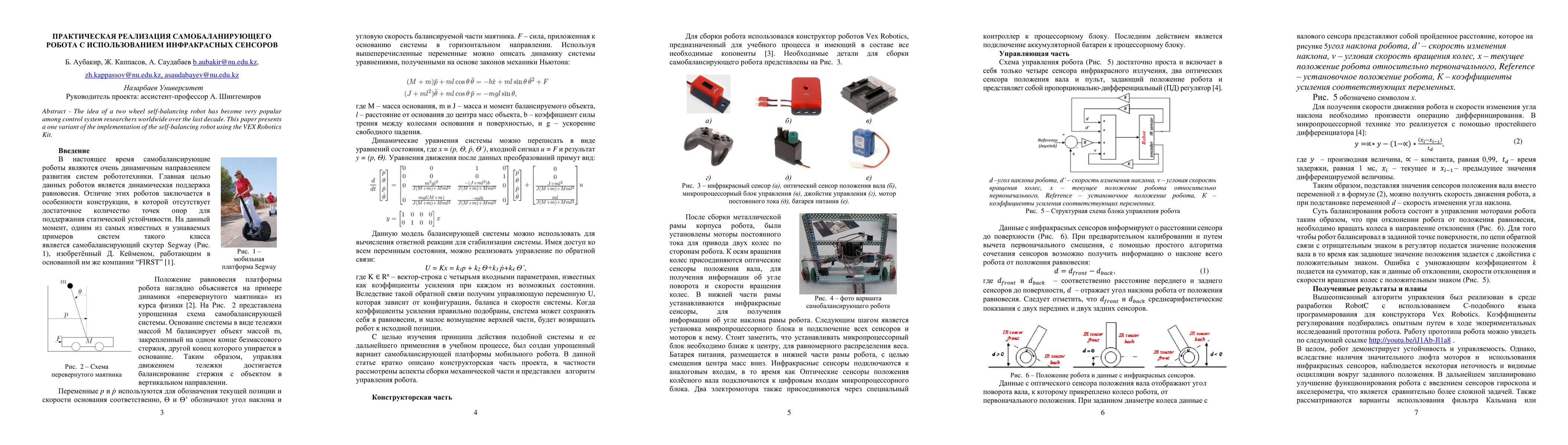 Summary: This paper details a practical implementation of a two-wheel self-balancing robot utilizing the VEX Robotics Kit and infrared sensors, contributing to the popular field of control system research.