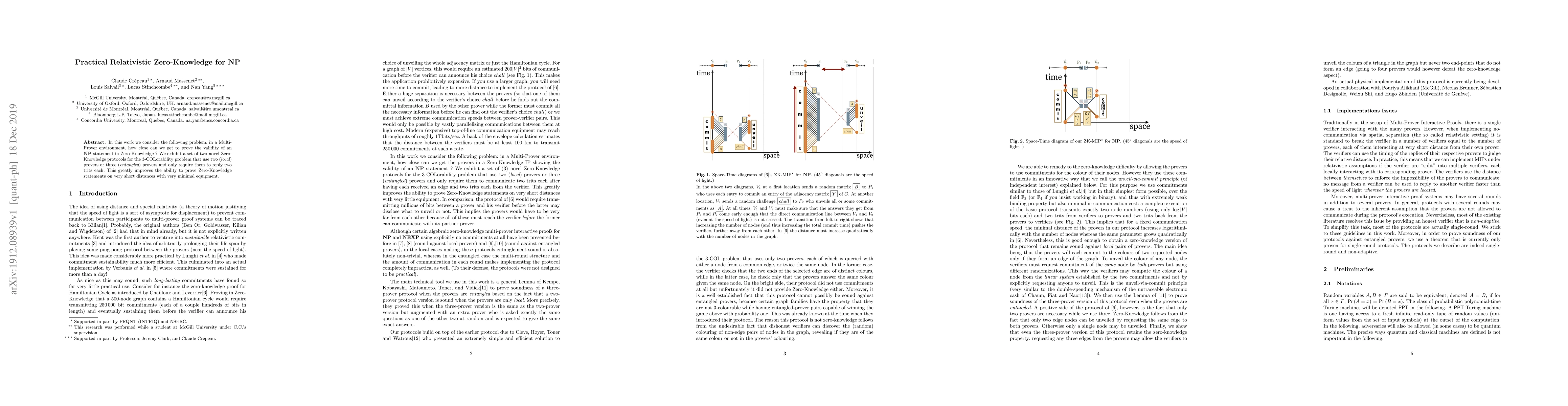 In this work we consider the following problem: in a Multi-Prover environment, how close can we get to prove the validity of an NP statement in Zero-Knowledge ? We exhibit a set of two novel Zero-Knowledge protocols for the 3-COLorability problem that use two (local) provers or three (entangled) provers and only require them to reply two trits each. This greatly improves the ability to prove Zero-Knowledge statements on very short distances with very minimal equipment.