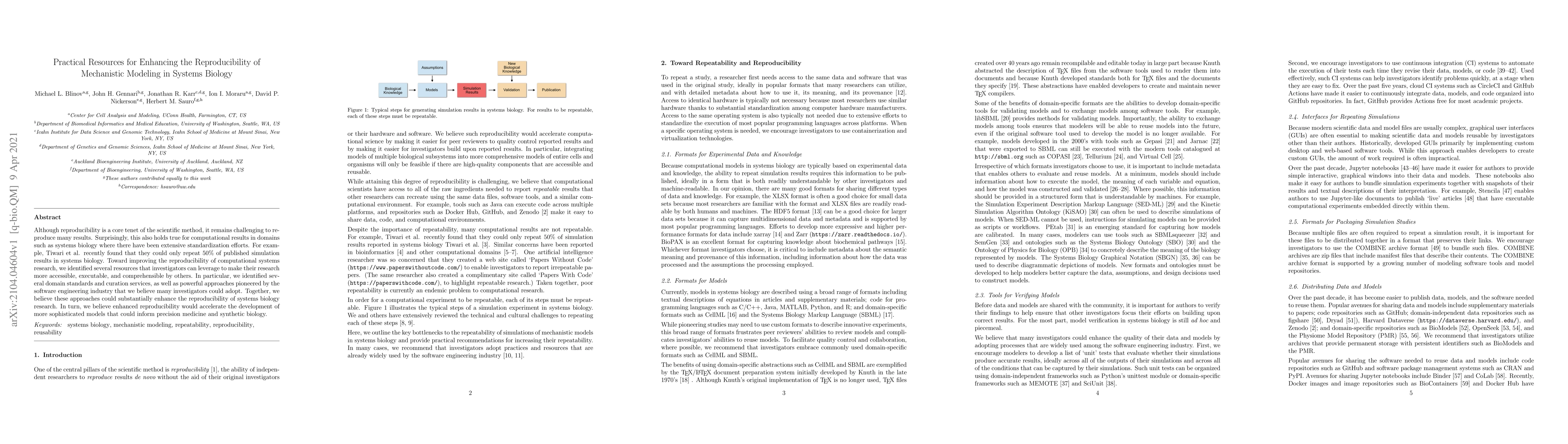 This paper identifies practical resources and standards to improve the reproducibility of computational models in systems biology, addressing the challenge of only being able to repeat 50% of published results. It suggests leveraging domain standards, curation services, and software engineering approaches to make research more accessible and comprehensible, ultimately enhancing reproducibility and advancing precision medicine and synthetic biology.