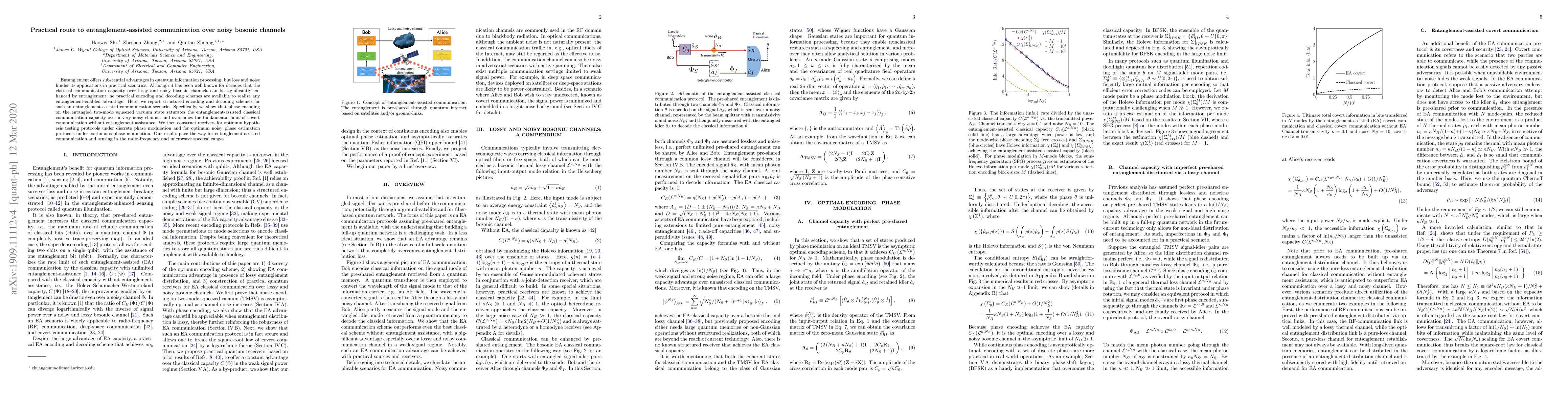 The paper introduces novel structured encoding and decoding schemes for entanglement-assisted communication over noisy bosonic channels, along with practical receiver designs for hypothesis testing and phase estimation protocols.