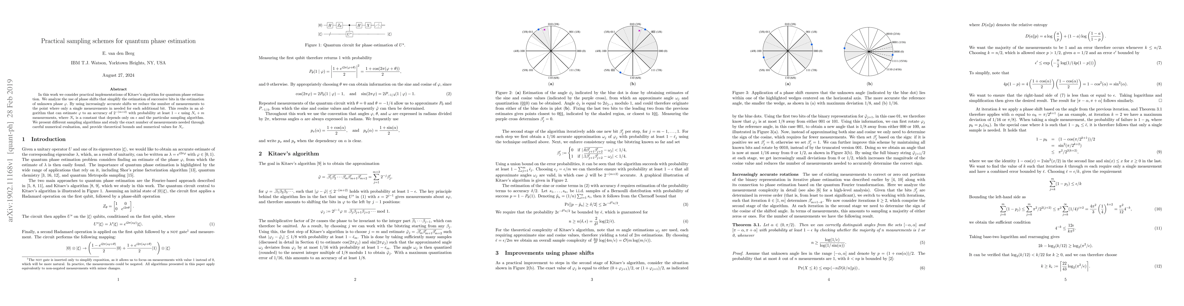 In this work we consider practical implementations of Kitaev's algorithm for quantum phase estimation. We analyze the use of phase shifts that simplify the estimation of successive bits in the estimation of unknown phase $\varphi$. By using increasingly accurate shifts we reduce the number of measurements to the point where only a single measurements in needed for each additional bit. This results in an algorithm that can estimate $\varphi$ to an accuracy of $2^{-(m+2)}$ with probability at least $1-\epsilon$ using $N_{\epsilon} + m$ measurements, where $N_{\epsilon}$ is a constant that depends only on $\epsilon$ and the particular sampling algorithm. We present different sampling algorithms and study the exact number of measurements needed through careful numerical evaluation, and provide theoretical bounds and numerical values for $N_{\epsilon}$.