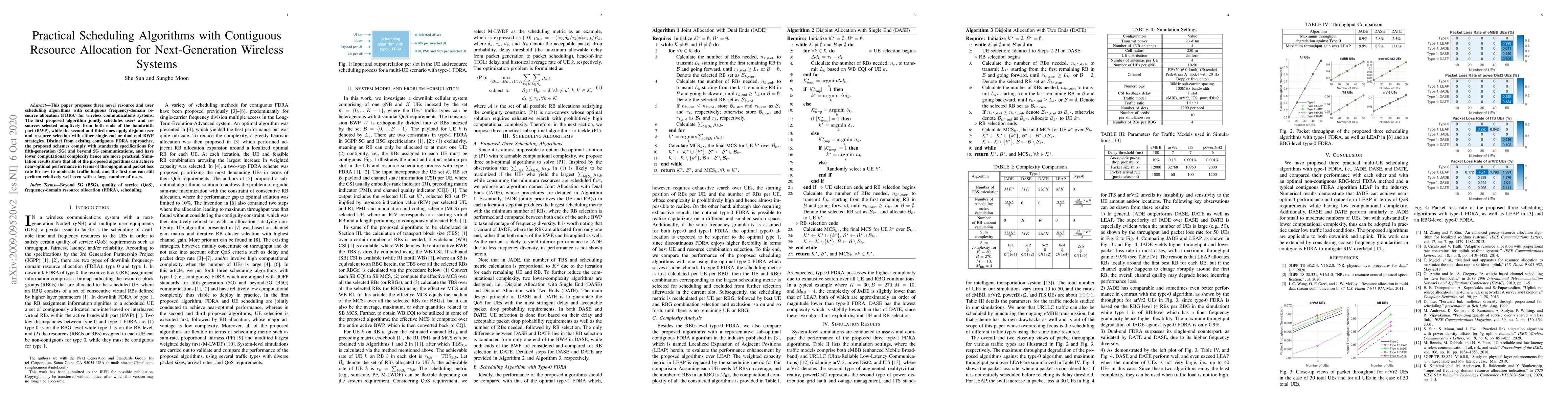 This paper introduces three new scheduling algorithms for next-generation wireless systems that utilize contiguous frequency-domain resource allocation. The algorithms achieve near-optimal performance in throughput and packet loss, especially under low to moderate traffic loads, and comply with 5G and beyond 5G standards with lower computational complexity.