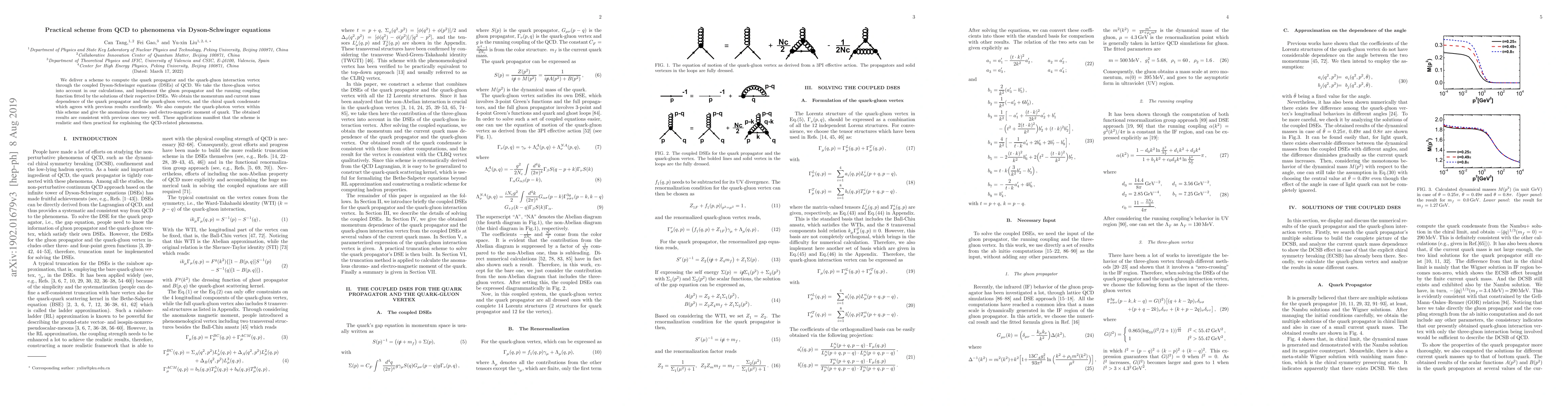 We deliver a new scheme to compute the quark propagator and the quark-gluon interaction vertex through the coupled Dyson-Schwinger equations (DSEs) of QCD. We take the three-gluon vertex into account in our calculations, and implement the gluon propagator and the running coupling function fitted by the solutions of their respective DSEs. We obtain the momentum and current mass dependence of the quark propagator and the quark-gluon vertex, and the chiral quark condensate which agrees with previous results excellently. We also compute the quark-photon vertex within this scheme and give the anomalous chromo- and electro-magnetic moment of quark. The obtained results also agree with previous ones very well. These applications manifest that the new scheme is realistic and then practical for explaining the QCD-related phenomena.