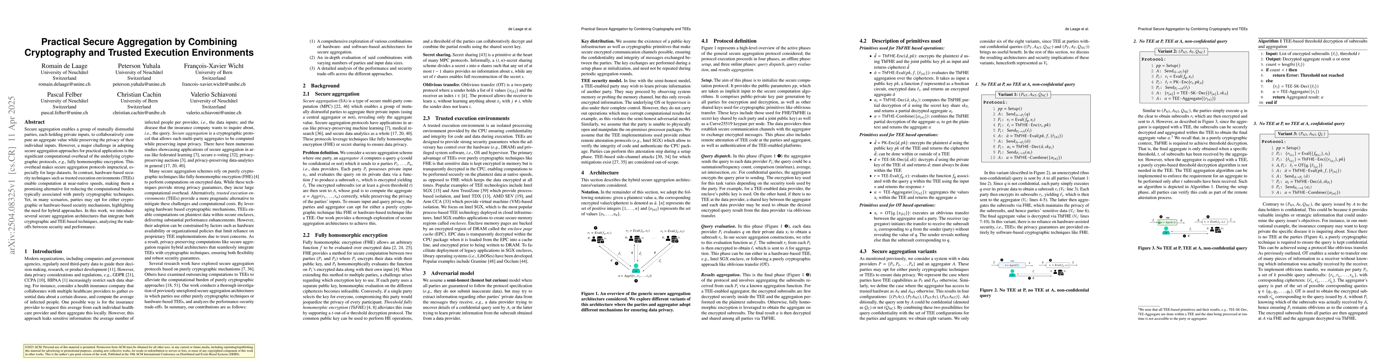 The paper introduces hybrid secure aggregation architectures that integrate cryptographic and TEE-based techniques, analyzing trade-offs between security and performance.