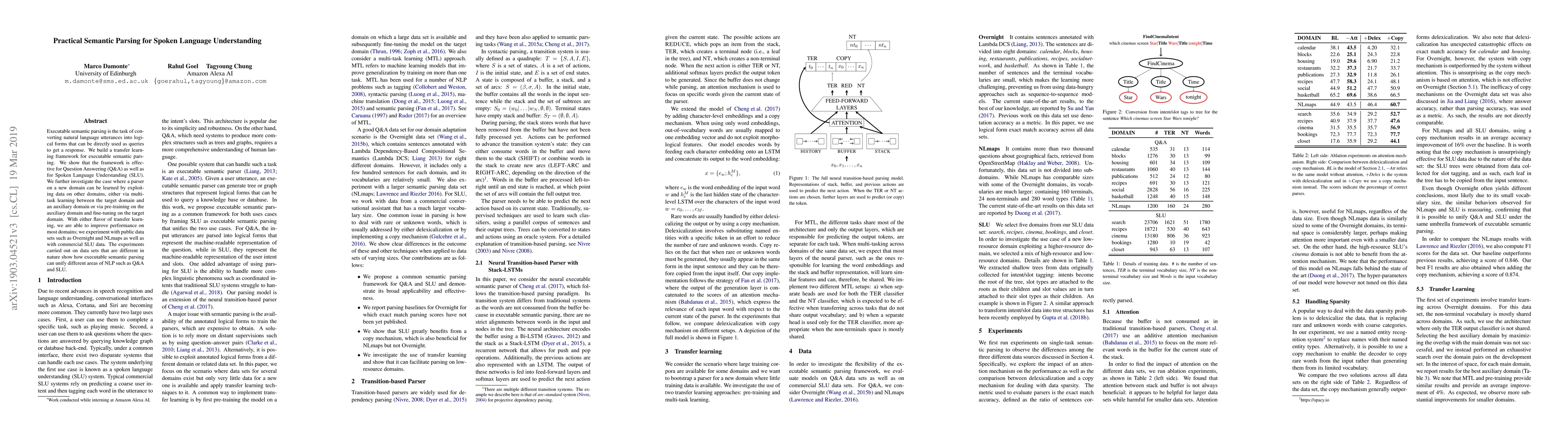 This paper presents a transfer learning framework for executable semantic parsing, demonstrating its effectiveness in both Question Answering and Spoken Language Understanding. The study explores domain adaptation through multi-task learning and pre-training, showing improved performance across various datasets, thereby unifying NLP areas like Q&A and SLU.