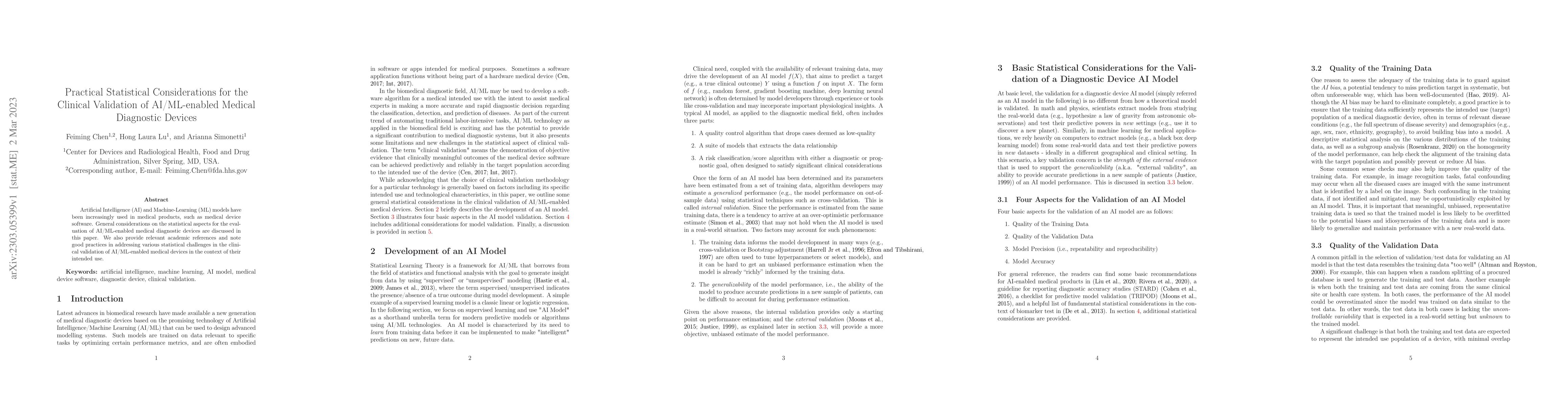 This paper discusses statistical considerations for evaluating AI/ML-enabled medical diagnostic devices, emphasizing good practices and challenges in clinical validation, and references relevant academic sources. It aims to guide the development and assessment of these medical devices.