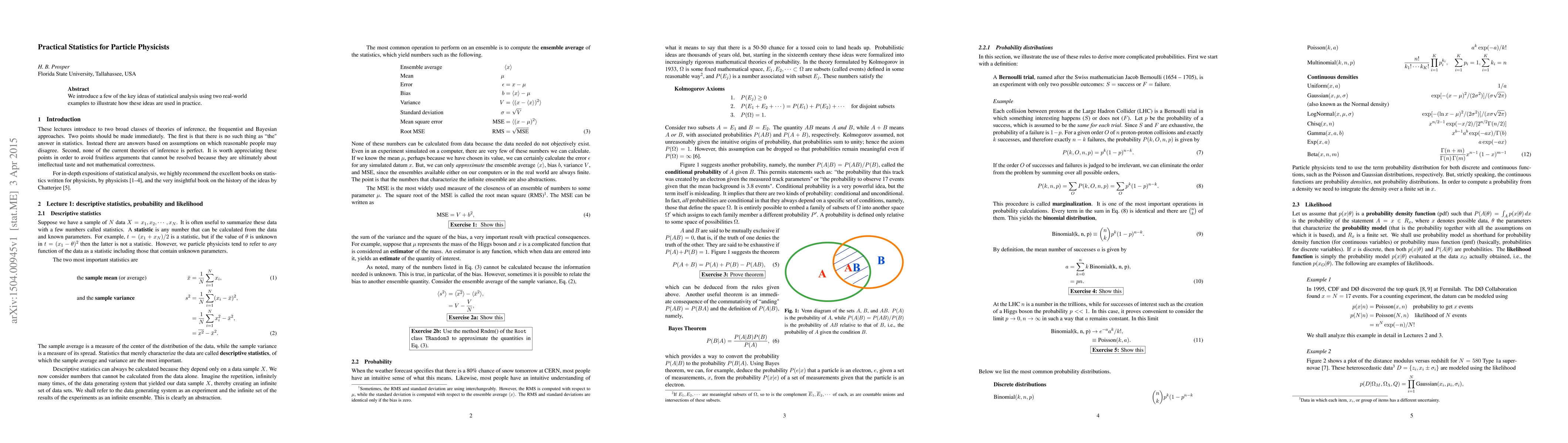 Summary: This paper outlines fundamental statistical concepts relevant to particle physics, employing practical examples to demonstrate their application in real-world scenarios. It aims to bridge theoretical statistics with its practical use in particle physics research.
