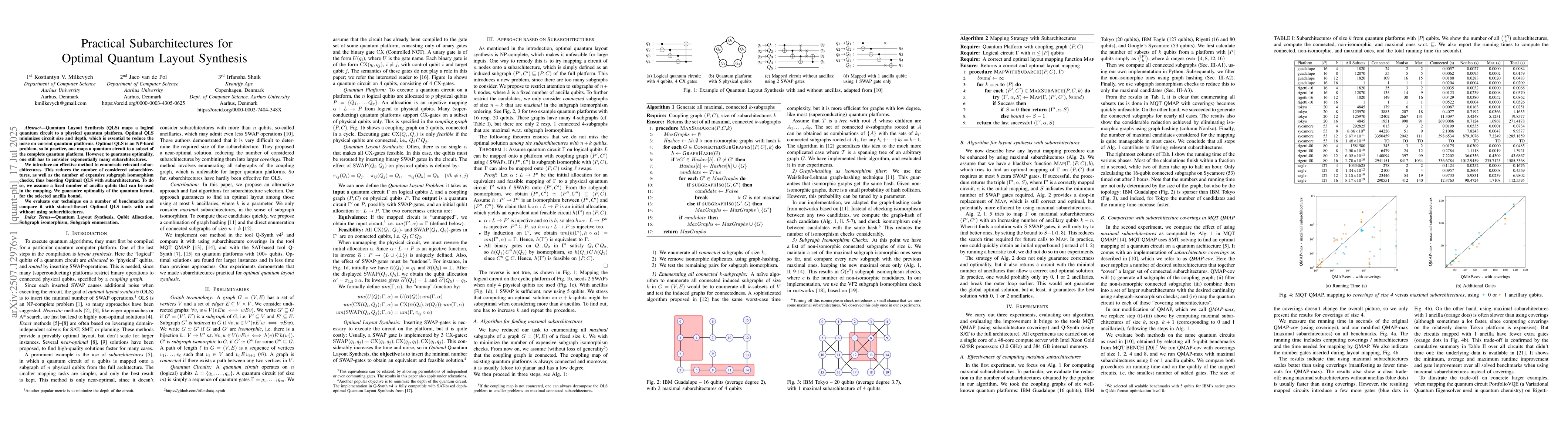 Quantum Layout Synthesis (QLS) maps a logical quantum circuit to a physical quantum platform. Optimal QLS minimizes circuit size and depth, which is essential to reduce the noise on current quantum platforms. Optimal QLS is an NP-hard problem, so in practice, one maps a quantum circuit to a subset of the complete quantum platform. However, to guarantee optimality, one still has to consider exponentially many subarchitectures. We introduce an effective method to enumerate relevant subarchitectures. This reduces the number of considered subarchitectures, as well as the number of expensive subgraph isomorphism checks, thus boosting Optimal QLS with subarchitectures. To do so, we assume a fixed number of ancilla qubits that can be used in the mapping. We guarantee optimality of the quantum layout, for the selected ancilla bound. We evaluate our technique on a number of benchmarks and compare it with state-of-the-art Optimal QLS tools with and without using subarchitectures.