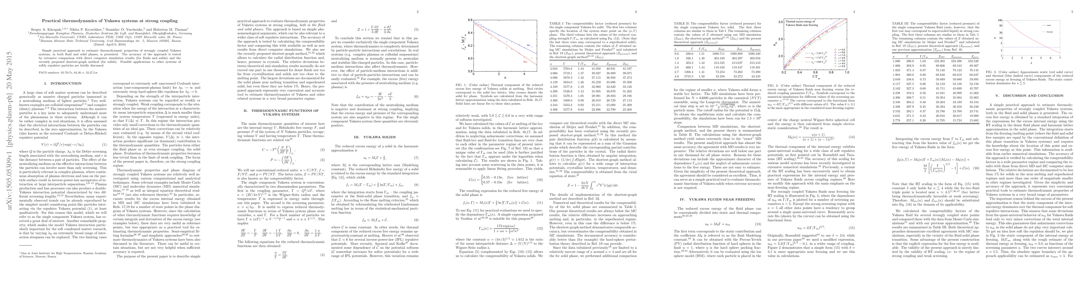 Simple practical approach to estimate thermodynamic properties of strongly coupled Yukawa systems, in both fluid and solid phases, is presented. The accuracy of the approach is tested by extensive comparison with direct computer simulation results (for fluids and solids) and the recently proposed shortest-graph method (for solids). Possible applications to other systems of softly repulsive particles are briefly discussed.