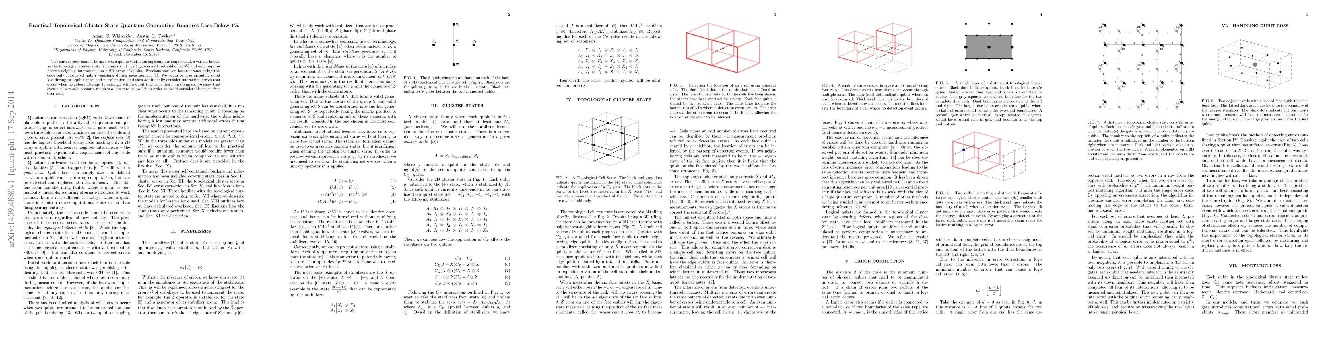The surface code cannot be used when qubits vanish during computation; instead, a variant known as the topological cluster state is necessary. It has a gate error threshold of $0.75% and only requires nearest-neighbor interactions on a 2D array of qubits. Previous work on loss tolerance using this code only considered qubits vanishing during measurement. We begin by also including qubit loss during two-qubit gates and initialization, and then additionally consider interaction errors that occur when neighbors attempt to entangle with a qubit that isn't there. In doing so, we show that even our best case scenario requires a loss rate below 1% in order to avoid considerable space-time overhead.