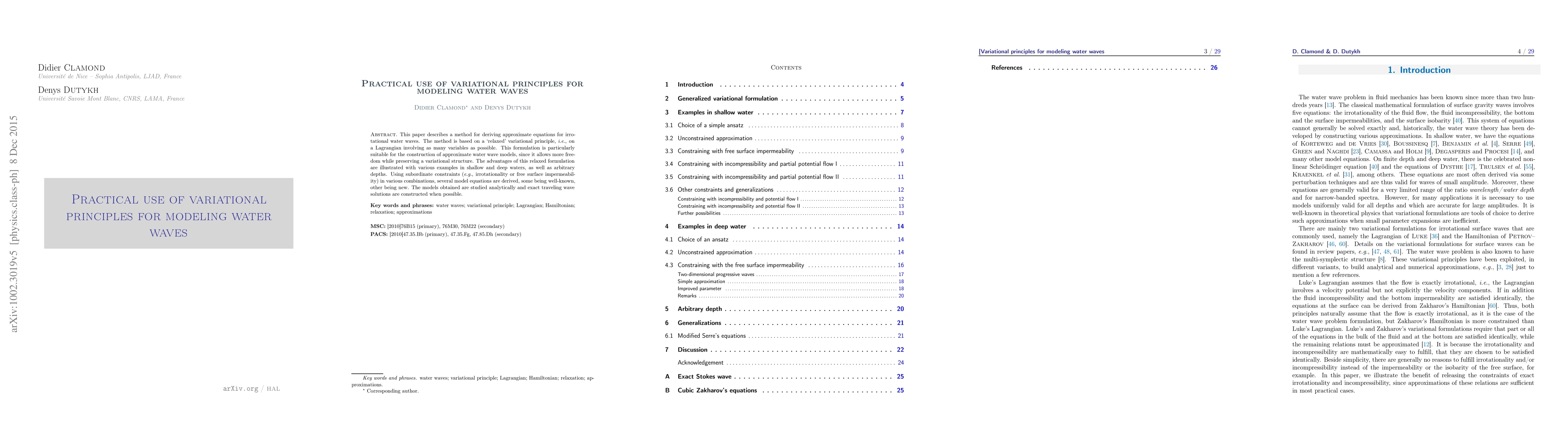 This paper describes a method for deriving approximate equations for irrotational water waves. The method is based on a 'relaxed' variational principle, i.e., on a Lagrangian involving as many variables as possible. This formulation is particularly suitable for the construction of approximate water wave models, since it allows more freedom while preserving the variational structure. The advantages of this relaxed formulation are illustrated with various examples in shallow and deep waters, as well as arbitrary depths. Using subordinate constraints (e.g., irrotationality or free surface impermeability) in various combinations, several model equations are derived, some being well-known, other being new. The models obtained are studied analytically and exact travelling wave solutions are constructed when possible.
