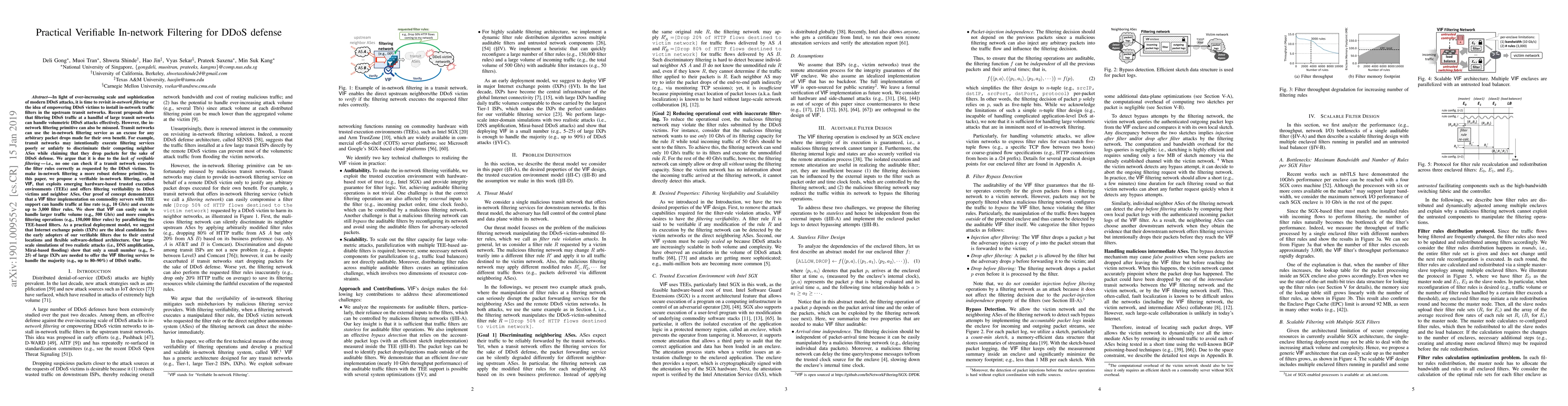 Researchers propose verifiable in-network filtering to prevent DDoS attacks by using trusted execution environments and offering transparent filtering operations.