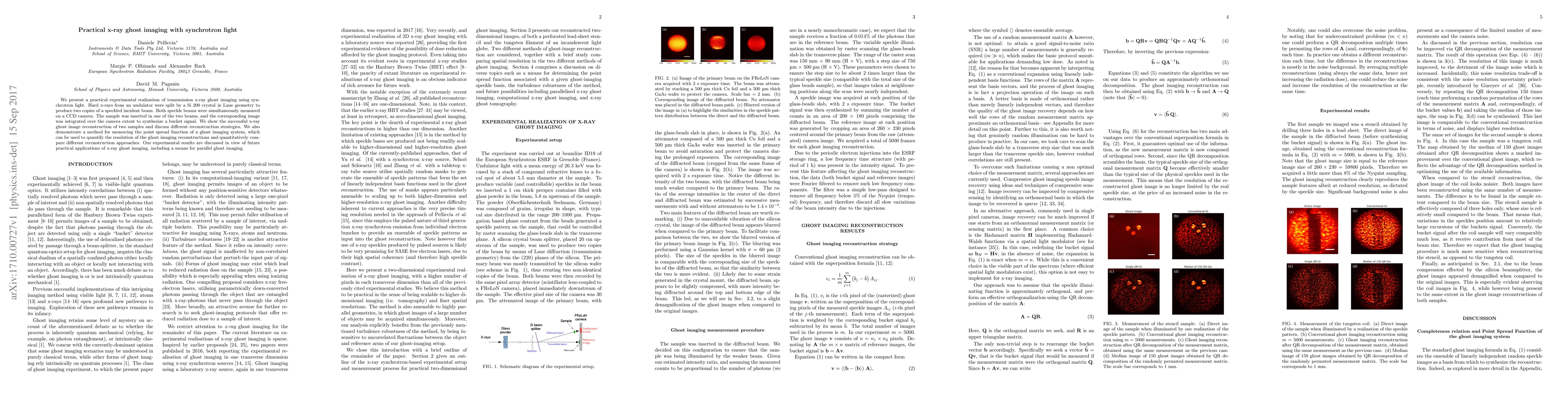 This paper demonstrates a practical x-ray ghost imaging experiment using synchrotron light, successfully reconstructing images of two samples by splitting the hard x-ray beam and analyzing the effects of one beam through a sample. The study also introduces a method for measuring the point spread function to evaluate the resolution and compare different reconstruction techniques.