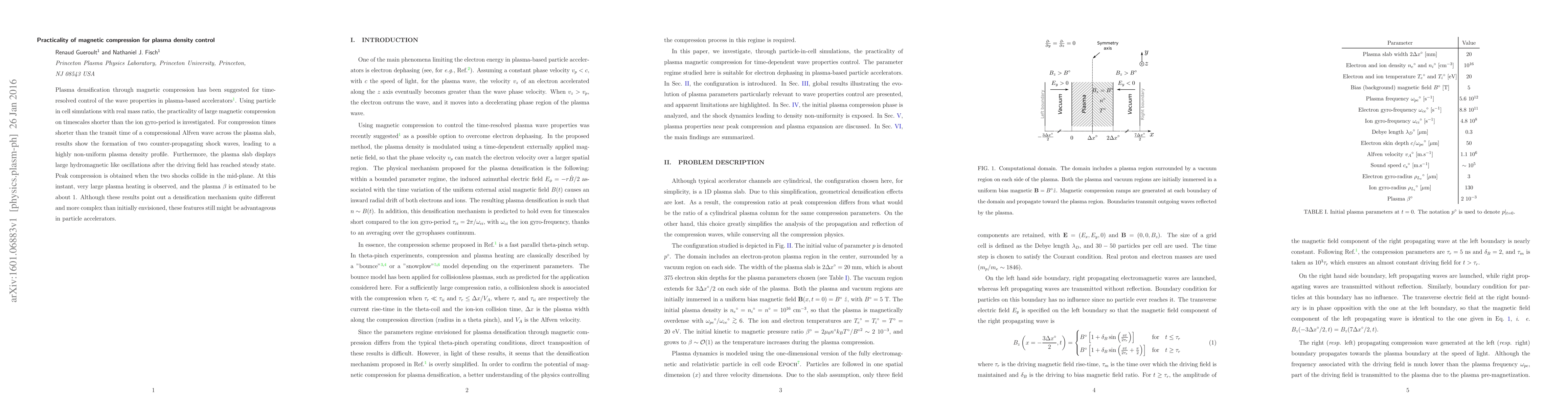 This study investigates the practicality of magnetic compression for plasma density control in accelerators using particle in cell simulations. Results show the formation of counter-propagating shock waves leading to non-uniform density profiles and significant plasma heating, suggesting a complex but potentially advantageous mechanism for plasma densification.