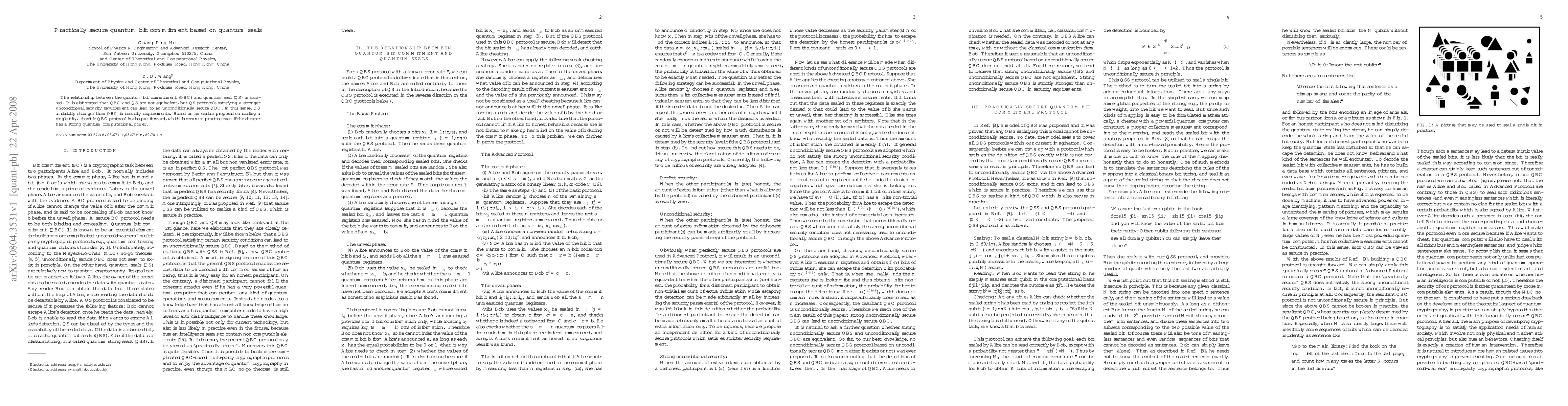 This paper explores the relationship between quantum bit commitment (QBC) and quantum seals (QS), demonstrating that while they are not equivalent, QS protocols can lead to an unconditionally secure QBC. It proposes a practical QBC protocol based on QS, which remains secure against strong quantum computational attacks.