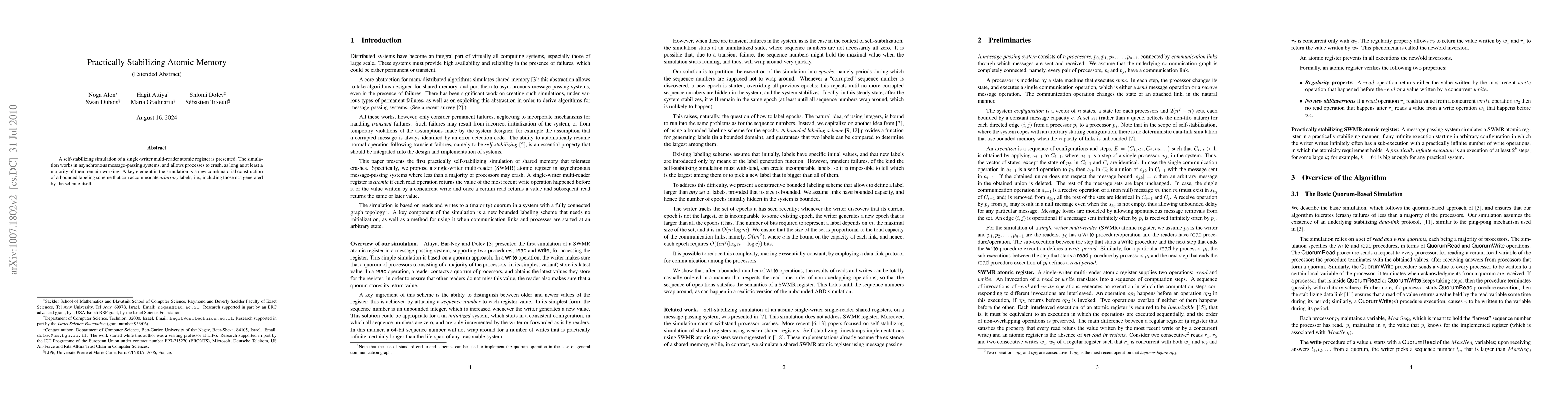 The research presents a self-stabilizing simulation of a single-writer multi-reader (SWMR) atomic register in asynchronous message-passing systems, allowing for crash failures as long as a majority of processes remain operational.