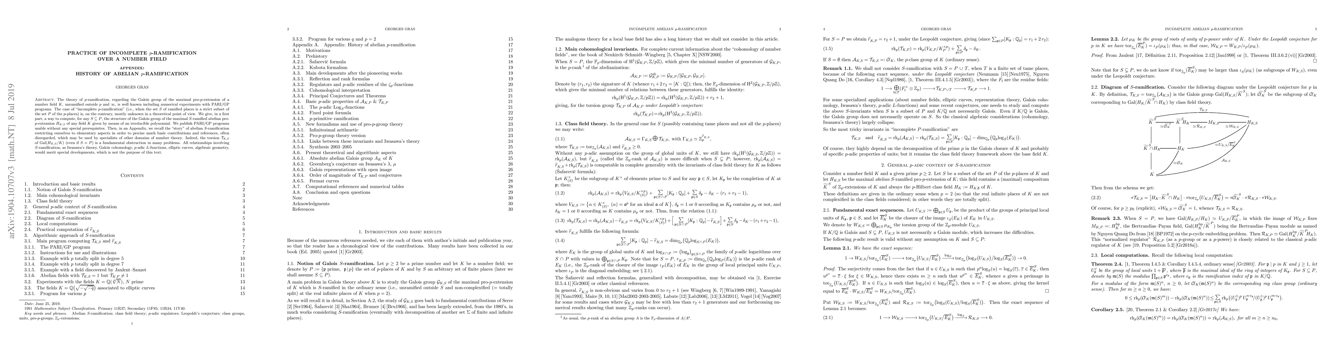 The theory of p-ramification, regarding the Galois group of the maximal pro-p-extension of a number field K, unramified outside p and $\infty$, is well known including numerical experiments with PARI/GP programs. The case of ``incomplete p-ramification'' (i.e., when the set S of ramified places is a strict subset of the set P of the p-places) is, on the contrary, mostly unknown in a theoretical point of view. We give, in a first part, a way to compute, for any S $\le$ P, the structure of the Galois group of the maximal S-ramified abelian pro-p-extension H\_(K,S) of any field K given by means of an irreducible polynomial. We publish PARI/GP programs usable without any special prerequisites. Then, in an Appendix, we recall the ``story'' of abelian S-ramification restricting ourselves to elementary aspects in order to precise much basic contributions and references, often disregarded, which may be used by specialists of other domains of number theory. Indeed, the torsion T\_(K,S) of Gal(H\_(K,S)/K) (even if S=P) is a fundamental obstruction in many problems. All relationships involving S-ramification, as Iwasawa's theory, Galois cohomology, p-adic L-functions, elliptic curves, algebraic geometry, would merit special developments, which is not the purpose of this text.