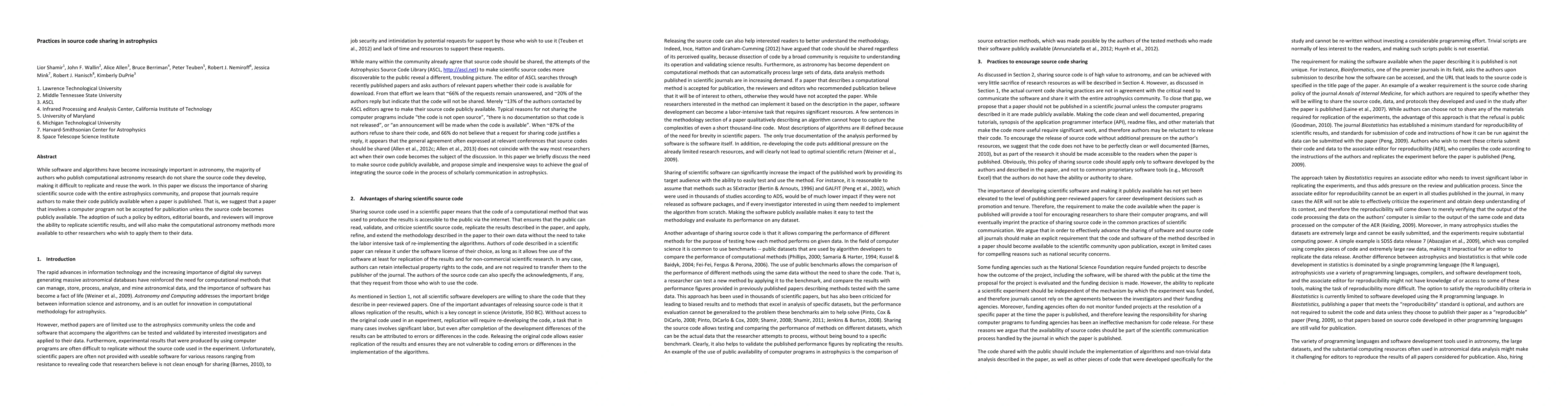 While software and algorithms have become increasingly important in astronomy, the majority of authors who publish computational astronomy research do not share the source code they develop, making it difficult to replicate and reuse the work. In this paper we discuss the importance of sharing scientific source code with the entire astrophysics community, and propose that journals require authors to make their code publicly available when a paper is published. That is, we suggest that a paper that involves a computer program not be accepted for publication unless the source code becomes publicly available. The adoption of such a policy by editors, editorial boards, and reviewers will improve the ability to replicate scientific results, and will also make the computational astronomy methods more available to other researchers who wish to apply them to their data.