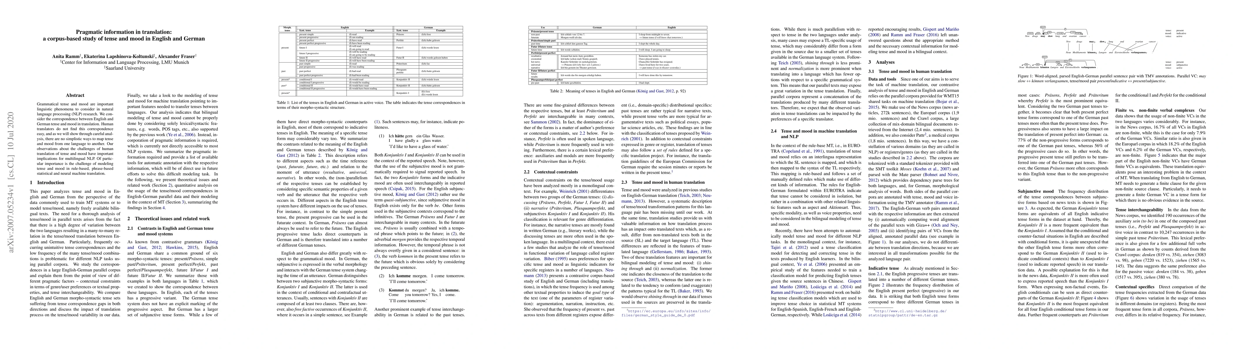 This study investigates the complexities of translating tense and mood between English and German, revealing significant challenges that complicate direct mappings. These findings underscore the difficulties in modeling such linguistic features in multilingual NLP systems, including rule-based, statistical, and neural machine translation.