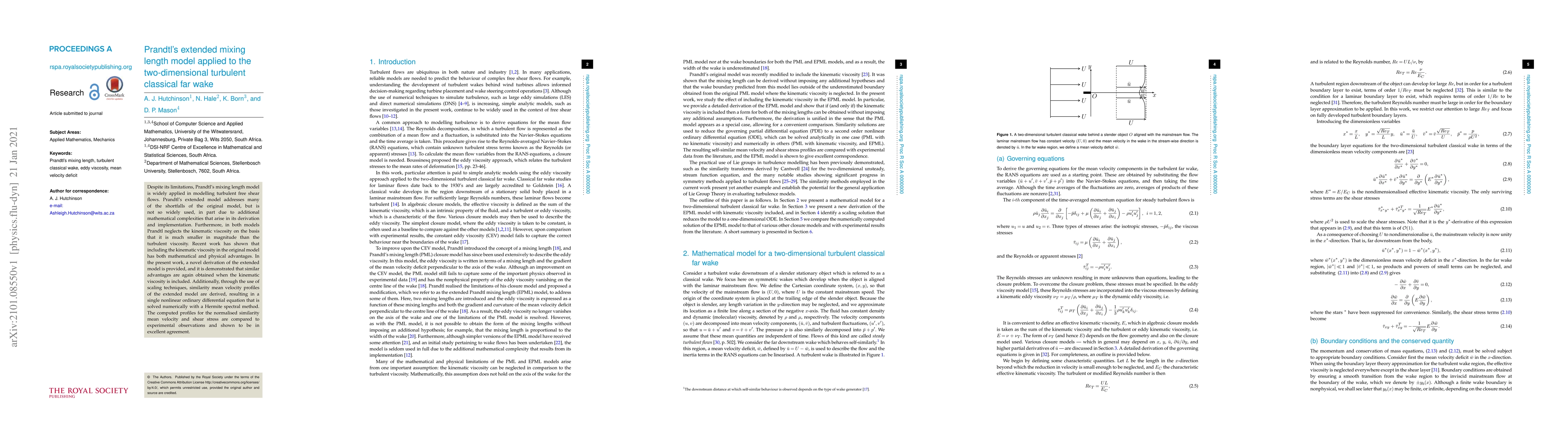 The paper presents a novel derivation of Prandtl's extended mixing length model, incorporating kinematic viscosity, and demonstrates its effectiveness through numerical solutions and comparison with experimental data.