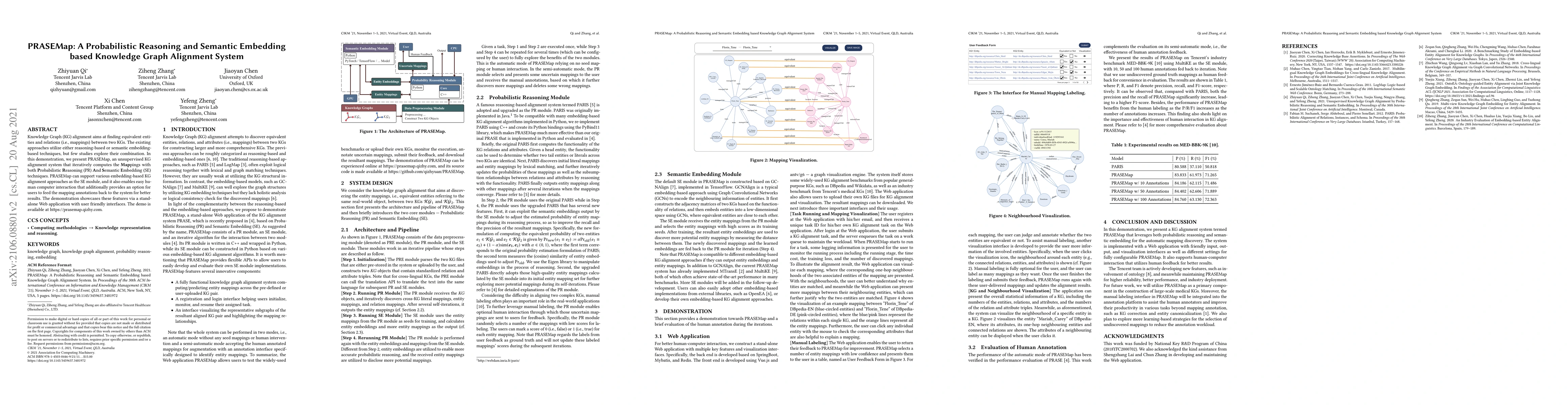 PRASEMap is an unsupervised Knowledge Graph alignment system that combines Probabilistic Reasoning and Semantic Embedding techniques to iteratively compute mappings. It supports various embedding-based methods and allows user feedback for improved results, demonstrated via a user-friendly web application.