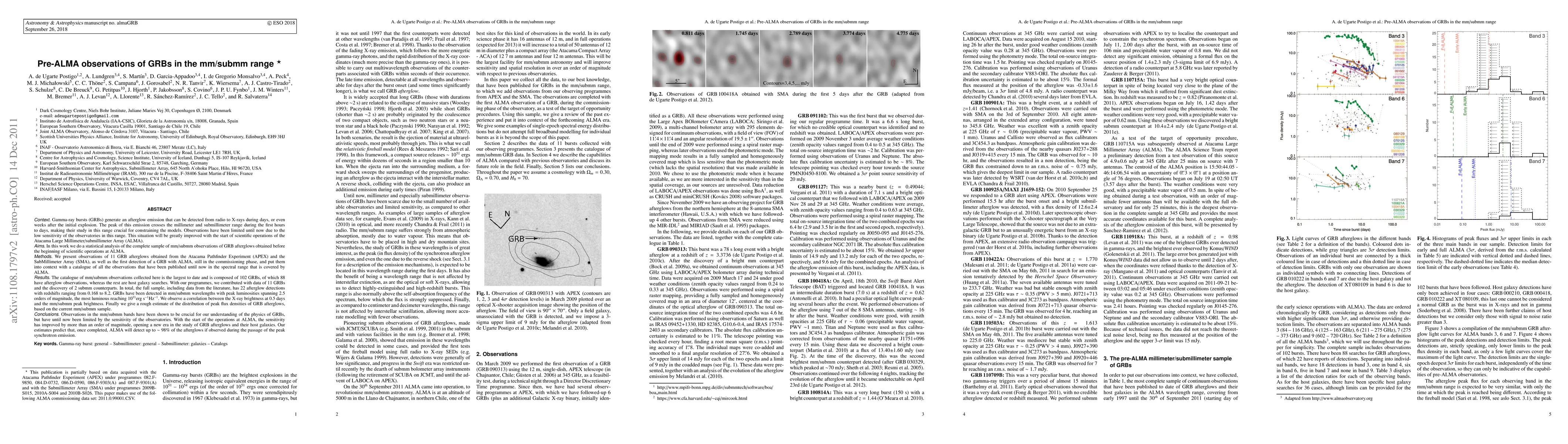 GRBs generate an afterglow emission that can be detected from radio to X-rays during days, or even weeks after the initial explosion. The peak of this emission crosses the mm/submm range during the first hours to days, making their study in this range crucial for constraining the models. Observations have been limited until now due to the low sensitivity of the observatories in this range. We present observations of 10 GRB afterglows obtained from APEX and SMA, as well as the first detection of a GRB with ALMA, and put them into context with all the observations that have been published until now in the spectral range that will be covered by ALMA. The catalogue of mm/submm observations collected here is the largest to date and is composed of 102 GRBs, of which 88 had afterglow observations, whereas the rest are host galaxy searches. With our programmes, we contributed with data of 11 GRBs and the discovery of 2 submm counterparts. In total, the full sample, including data from the literature, has 22 afterglow detections with redshift ranging from 0.168 to 8.2. GRBs have been detected in mm/submm wavelengths with peak luminosities spanning 2.5 orders of magnitude, the most luminous reaching 10^33erg s^-1 Hz^-1. We observe a correlation between the X-ray brightness at 0.5 days and the mm/submm peak brightness. Finally we give a rough estimate of the distribution of peak flux densities of GRB afterglows, based on the current mm/submm sample. Observations in the mm/submm bands have been shown to be crucial for our understanding of the physics of GRBs, but have until now been limited by the sensitivity of the observatories. With the start of the operations at ALMA, the sensitivity will be increased by more than an order of magnitude. Our estimates predict that, once completed, ALMA will detect up to 98% of the afterglows if observed during the passage of the peak synchrotron emission.