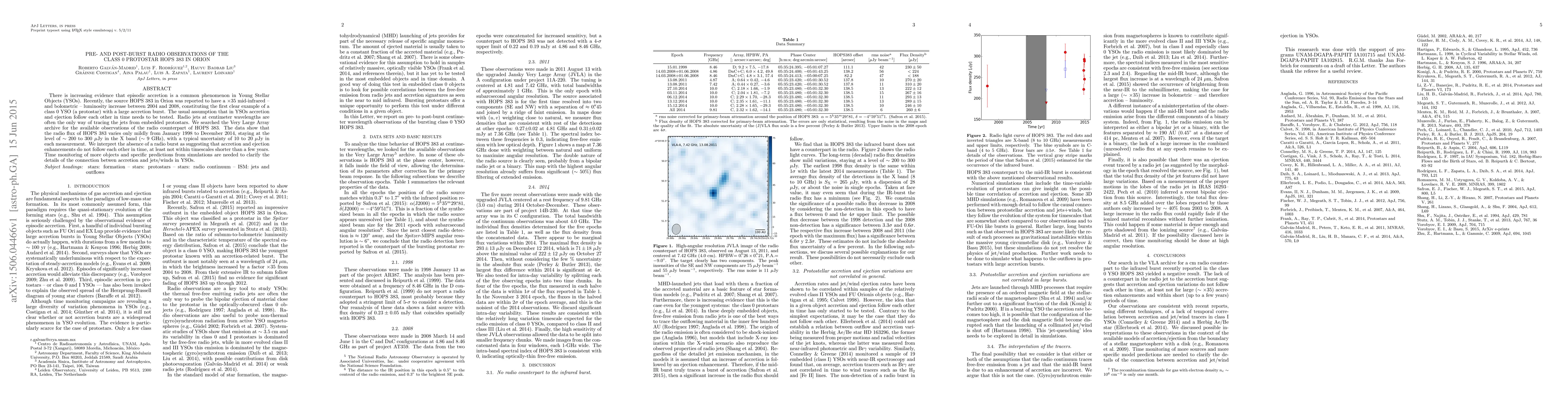This paper investigates the radio emissions of the class 0 protostar HOPS 383 in Orion, which experienced a significant luminosity increase, suggesting an accretion burst. The study finds no evidence of a corresponding radio burst, indicating that accretion and ejection processes may not be directly linked in time. Further monitoring and simulations are needed to understand the relationship between accretion and jet/wind activity in young stellar objects.