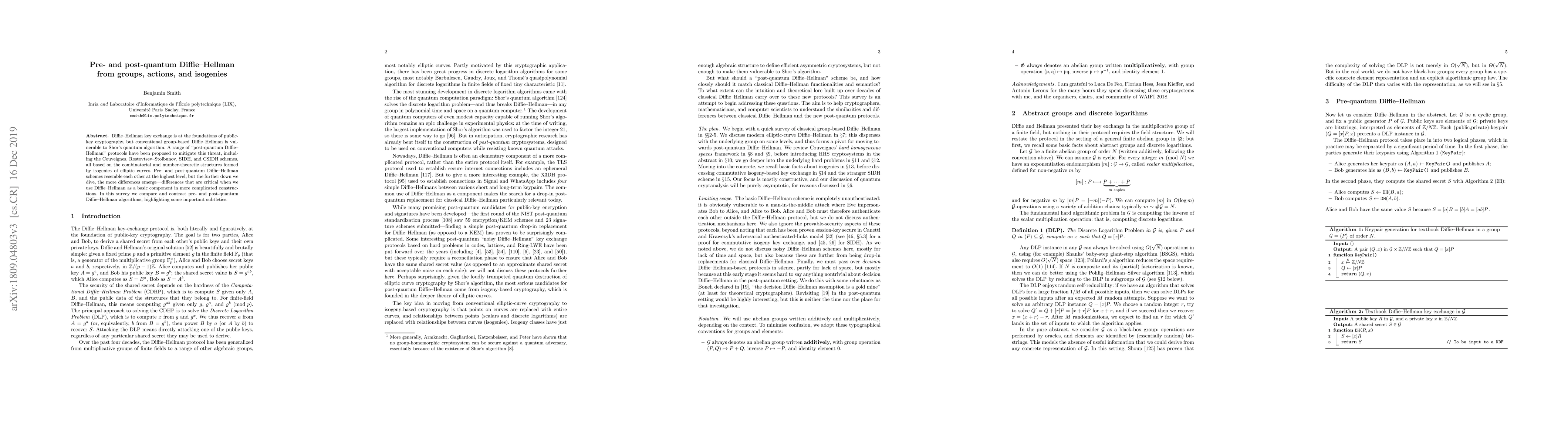 Diffie-Hellman key exchange is at the foundations of public-key cryptography, but conventional group-based Diffie-Hellman is vulnerable to Shor's quantum algorithm. A range of "post-quantum Diffie-Hellman" protocols have been proposed to mitigate this threat, including the Couveignes, Rostovtsev-Stolbunov, SIDH, and CSIDH schemes, all based on the combinatorial and number-theoretic structures formed by isogenies of elliptic curves. Pre-and post-quantum Diffie-Hellman schemes resemble each other at the highest level, but the further down we dive, the more differences emerge-differences that are critical when we use Diffie-Hellman as a basic component in more complicated constructions. In this survey we compare and contrast pre-and post-quantum Diffie-Hellman algorithms, highlighting some important subtleties.