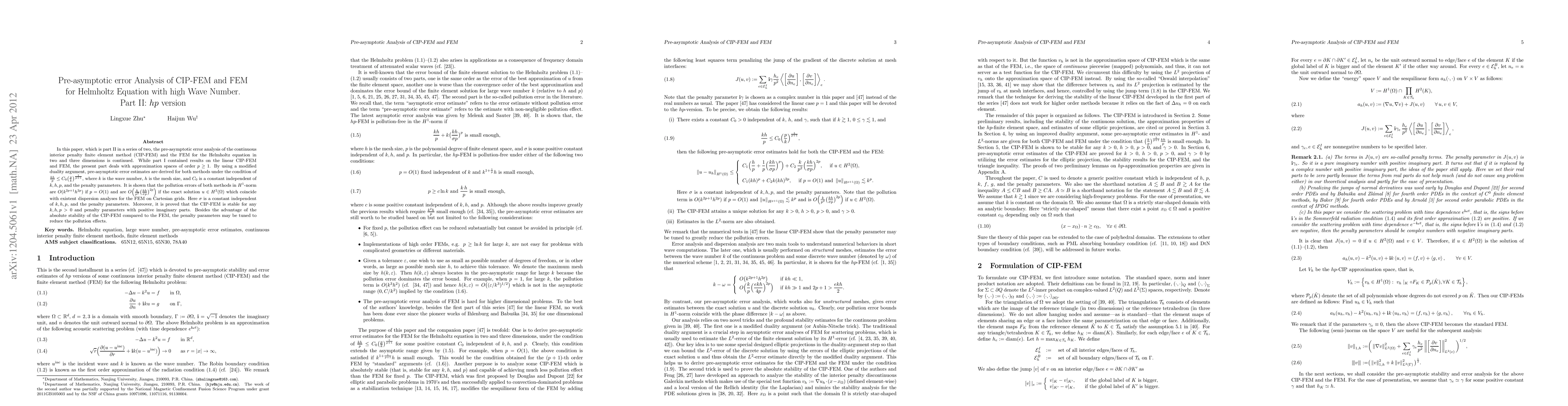 This paper extends pre-asymptotic error analysis for the continuous interior penalty finite element method (CIP-FEM) and FEM for the Helmholtz equation, focusing on $hp$ versions. It demonstrates stability and error estimates under specific conditions, showing CIP-FEM's absolute stability and tunable penalty parameters to mitigate pollution effects.