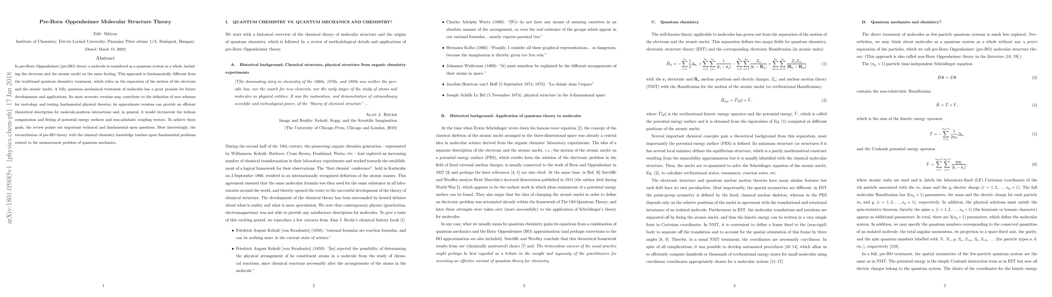 Pre-Born-Oppenheimer theory treats molecules as a whole quantum system, offering promise for new metrology schemes and efficient description of molecule-positron interactions. Its reconciliation with classical chemistry touches upon fundamental problems related to the measurement problem in quantum mechanics.