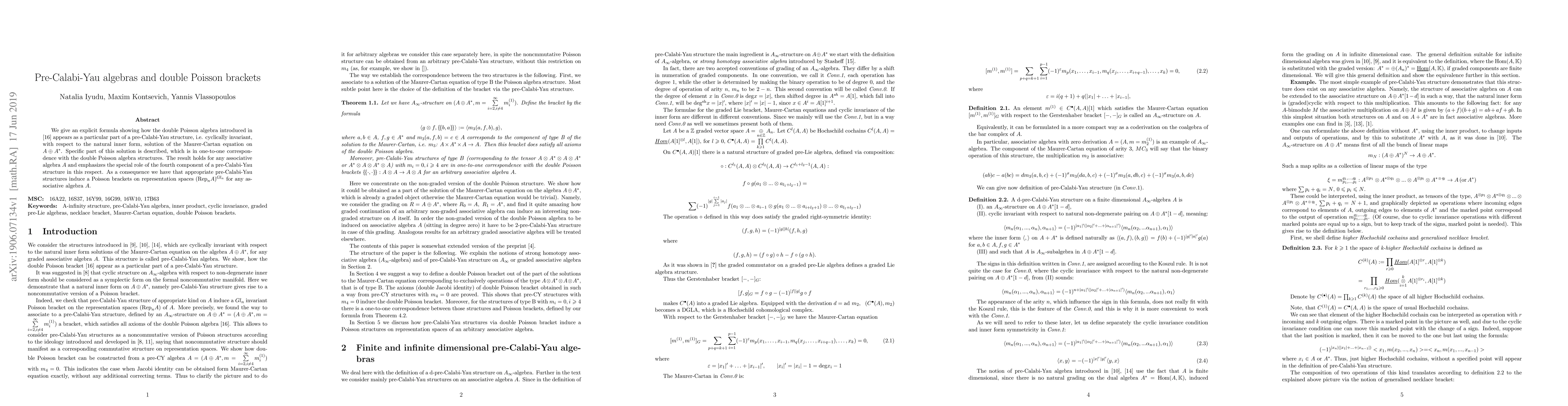 This paper establishes a connection between pre-Calabi-Yau algebras and double Poisson brackets, showing that a double Poisson algebra arises from a cyclically invariant pre-Calabi-Yau structure. The study highlights the significance of the fourth component in inducing Poisson brackets on representation spaces.