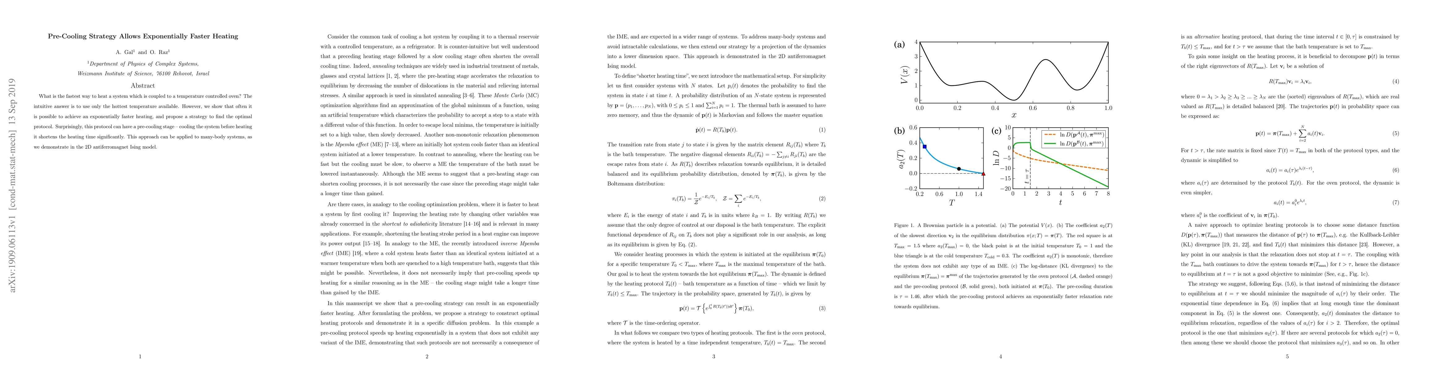 What is the fastest way to heat a system which is coupled to a temperature controlled oven? The intuitive answer is to use only the hottest temperature available. However, we show that often it is possible to achieve an exponentially faster heating, and propose a strategy to find the optimal protocol. Surprisingly, this protocol can have a pre-cooling stage -- cooling the system before heating it shortens the heating time significantly. This approach can be applied to many-body systems, as we demonstrate in the 2D antiferromagnet Ising model.