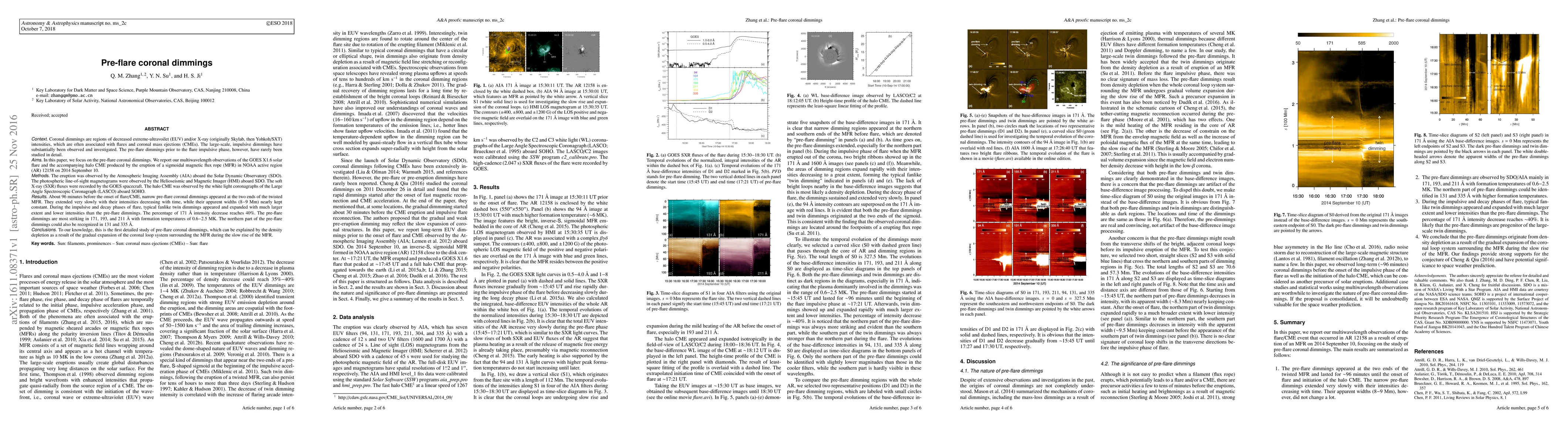 This paper investigates pre-flare coronal dimmings observed before the GOES X1.6 solar flare and accompanying halo CME in 2014. The study reveals that dimmings appeared 96 minutes prior, linked to the expansion of a twisted magnetic flux rope, and are most prominent in 171, 193, and 211 Å wavelengths, indicating density depletion due to gradual coronal loop expansion.