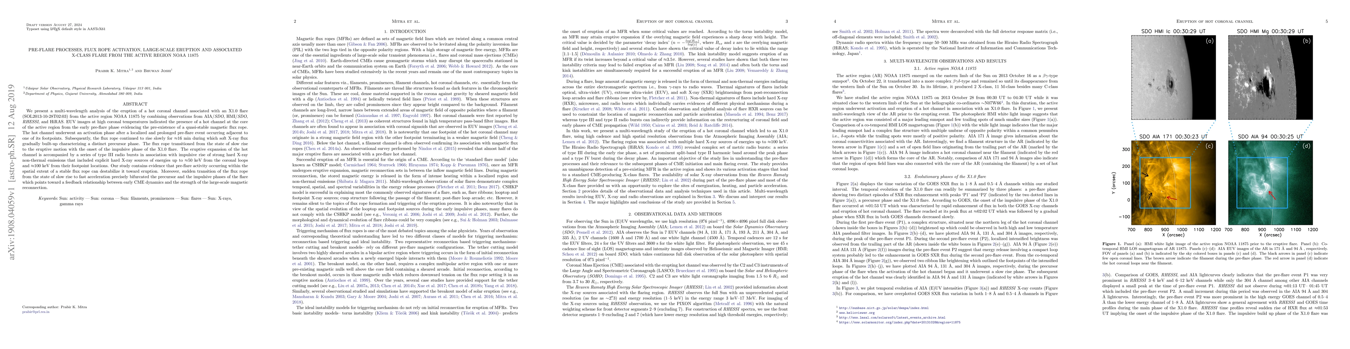 We present a multi-wavelength analysis of the eruption of a hot coronal channel associated with an X1.0 flare (SOL2013-10-28T02:03) from the active region NOAA 11875 by combining observations from AIA/SDO, HMI/SDO, RHESSI, and HiRAS. EUV images at high coronal temperatures indicated the presence of a hot channel at the core of the active region from the early pre-flare phase evidencing the pre-existence of a quasi-stable magnetic flux rope. The hot channel underwent an activation phase after a localized and prolonged pre-flare event occurring adjacent to one of its footpoints. Subsequently, the flux rope continued to rise slowly for $\approx$16 min during which soft X-ray flux gradually built-up characterizing a distinct precursor phase. The flux rope transitioned from the state of slow rise to the eruptive motion with the onset of the impulsive phase of the X1.0 flare. The eruptive expansion of the hot channel is accompanied by a series of type III radio bursts in association with impulsive rise of strong hard X-ray non-thermal emissions that included explicit hard X-ray sources of energies up to $\approx$50 keV from the coronal loops and $\approx$100 keV from their footpoint locations. Our study contains evidence that pre-flare activity occurring within the spatial extent of a stable flux rope can destabilize it toward eruption. Moreover, sudden transition of the flux rope from the state of slow rise to fast acceleration precisely bifurcated the precursor and the impulsive phases of the flare which points toward a feedback relationship between early CME dynamics and the strength of the large-scale magnetic reconnection.