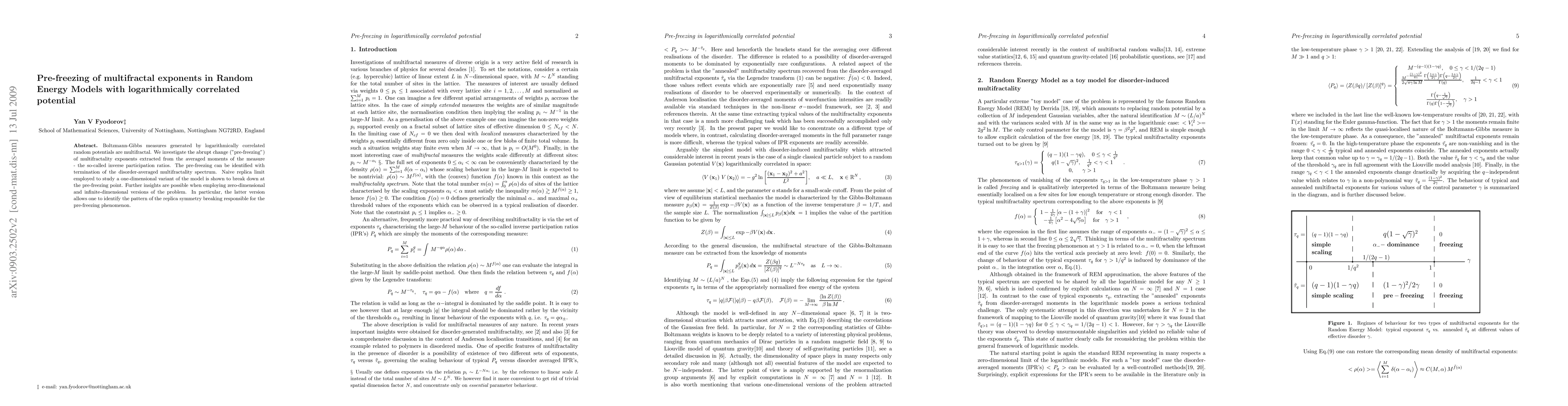 Boltzmann-Gibbs measures generated by logarithmically correlated random potentials are multifractal. We investigate the abrupt change ("pre-freezing") of multifractality exponents extracted from the averaged moments of the measure - the so-called inverse participation ratios. The pre-freezing can be identified with termination of the disorder-averaged multifractality spectrum. Naive replica limit employed to study a one-dimensional variant of the model is shown to break down at the pre-freezing point. Further insights are possible when employing zero-dimensional and infinite-dimensional versions of the problem. In particular, the latter version allows one to identify the pattern of the replica symmetry breaking responsible for the pre-freezing phenomenon.