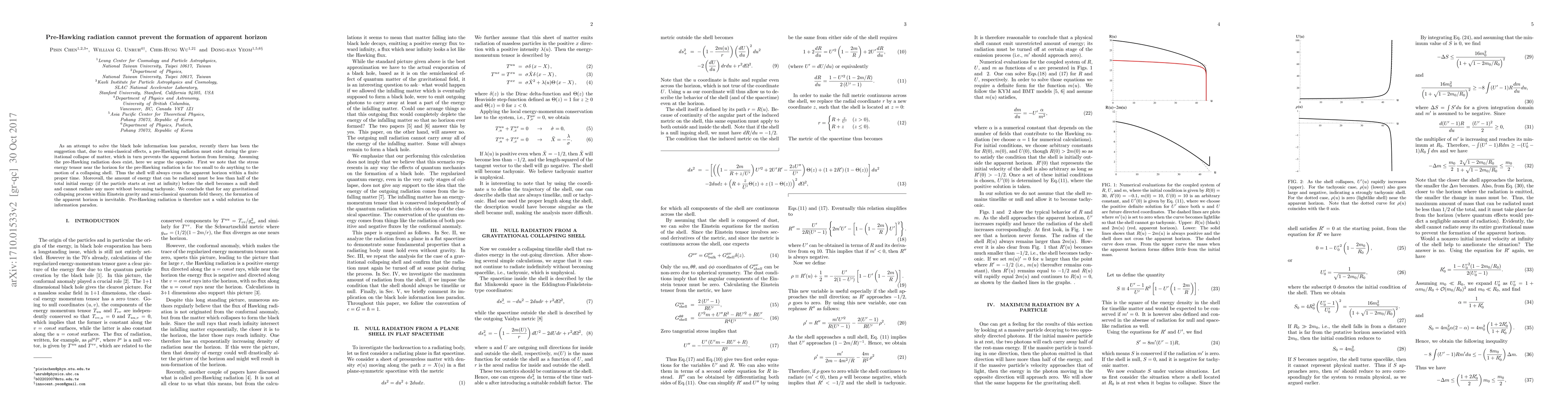 This paper argues that pre-Hawking radiation does not prevent the formation of apparent horizons during gravitational collapse. It concludes that the energy from pre-Hawking radiation is insufficient to alter the motion of collapsing shells, thus the apparent horizon will always form, invalidating the proposed solution to the black hole information loss paradox.