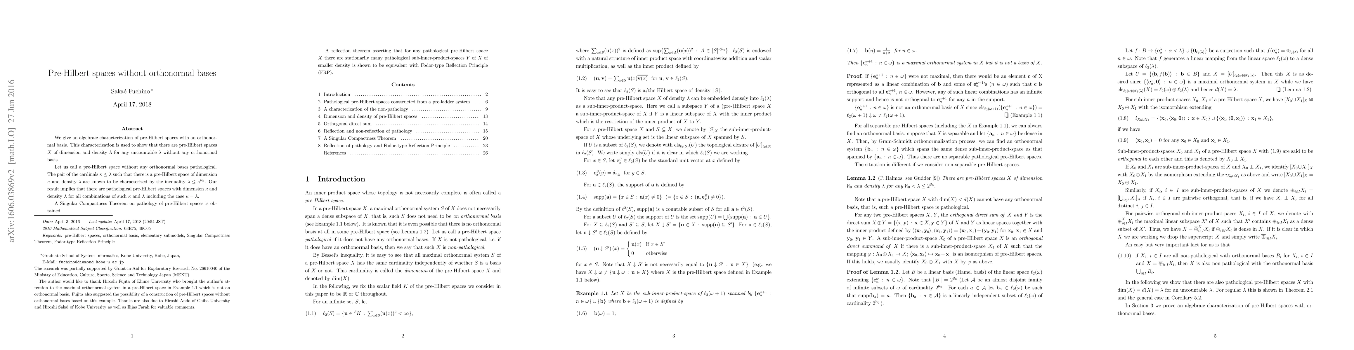 This paper characterizes pre-Hilbert spaces with orthonormal bases and demonstrates the existence of pathological pre-Hilbert spaces without orthonormal bases for any uncountable dimension and density. It also establishes a Singular Compactness Theorem and a reflection theorem equivalent to the Fodor-type Reflection Principle.