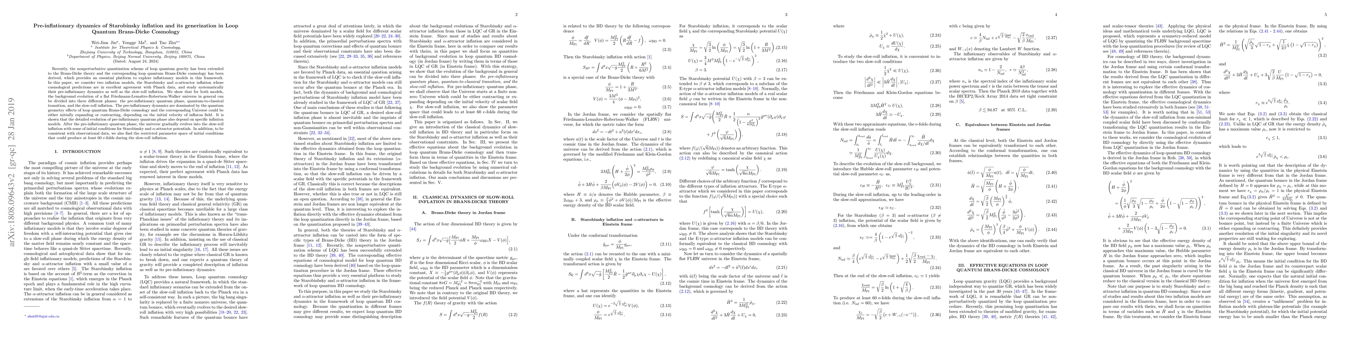 This paper investigates the pre-inflationary dynamics of the Starobinsky and $\alpha$-attractor inflation models within the framework of loop quantum Brans-Dicke cosmology, revealing three distinct phases: the pre-inflationary quantum phase, quantum-to-classical transition, and slow-roll inflation. It concludes that quantum geometry effects dictate the pre-inflationary dynamics, with initial conditions influencing whether the universe expands or contracts before entering slow-roll inflation.