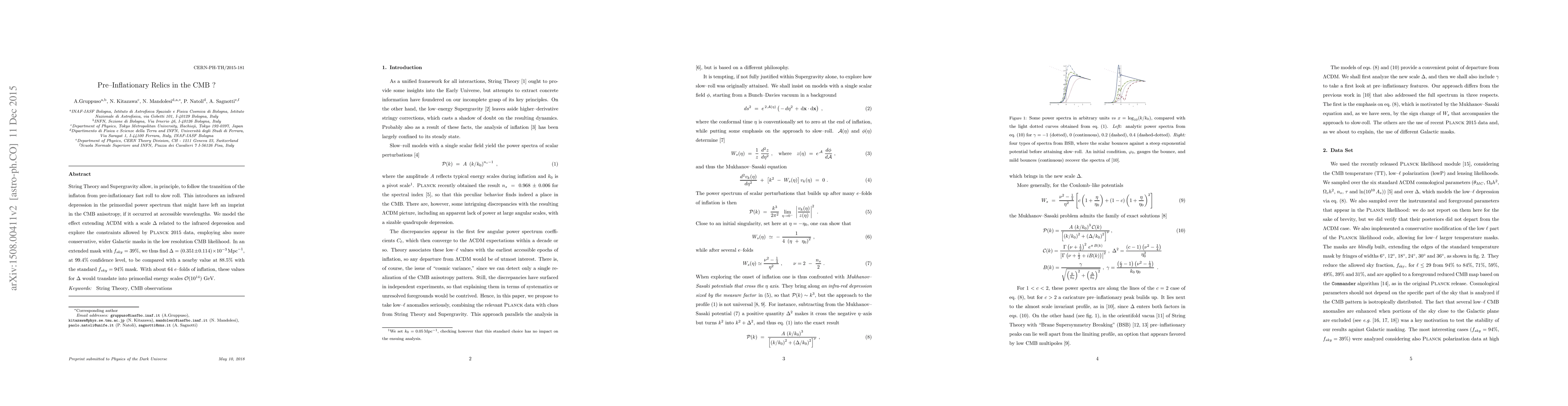 String Theory and Supergravity allow, in principle, to follow the transition of the inflaton from pre-inflationary fast roll to slow roll. This introduces an infrared depression in the primordial power spectrum that might have left an imprint in the CMB anisotropy, if it occurred at accessible wavelengths. We model the effect extending $\Lambda$CDM with a scale $\Delta$ related to the infrared depression and explore the constraints allowed by {\sc Planck} data, employing also more conservative, wider Galactic masks in the low resolution CMB likelihood. In an extended mask with $f_{sky}=39\%$, we thus find $\Delta = (0.351 \pm 0.114) \times 10^{-3} \, \mbox{Mpc}^{-1}$, at $99.4\%$ confidence level, to be compared with a nearby value at $88.5\%$ with the standard $f_{sky}=94\%$ mask. With about 64 $e$--folds of inflation, these values for $\Delta$ would translate into primordial energy scales ${\cal O}(10^{14})$ GeV.