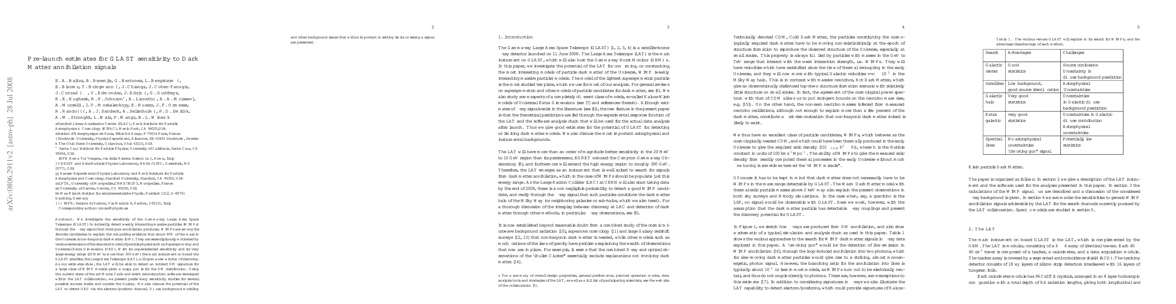 We investigate the sensitivity of the Gamma-ray Large Area Space Telescope (GLAST) to indirectly detect weakly interacting massive particles (WIMPs) through the $\gamma$-ray signal that their pair annihilation produces. WIMPs are among the favorite candidates to explain the compelling evidence that about 80% of the mass in the Universe is non-baryonic dark matter (DM). They are serendipitously motivated by various extensions of the standard model of particle physics such as Supersymmetry and Universal Extra Dimensions (UED). With its unprecedented sensitivity and its very large energy range (20 MeV to more than 300 GeV) the main instrument on board the GLAST satellite, the Large Area Telescope (LAT), will open a new window of discovery. As our estimates show, the LAT will be able to detect an indirect DM signature for a large class of WIMP models given a cuspy profile for the DM distribution. Using the current state of the art Monte Carlo and event reconstruction software developed within the LAT collaboration, we present preliminary sensitivity studies for several possible sources inside and outside the Galaxy. We also discuss the potential of the LAT to detect UED via the electron/positron channel. Diffuse background modeling and other background issues that will be important in setting limits or seeing a signal are presented.
