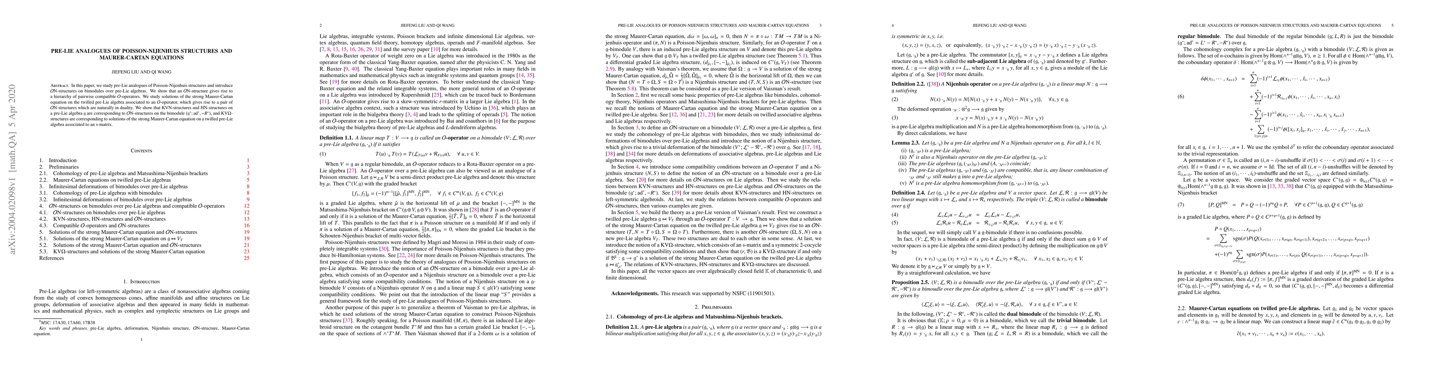 In this paper, we study pre-Lie analogues of Poisson-Nijenhuis structures and introduce ON-structures on bimodules over pre-Lie algebras. We show that an ON-structure gives rise to a hierarchy of pairwise compatible O-operators. We study solutions of the strong Maurer-Cartan equation on the twilled pre-Lie algebra associated to an O-operator, which gives rise to a pair of ON-structures which are naturally in duality. We show that KVN-structures and HN-structures on a pre-Lie algebra g are corresponding to ON-structures on the bimodule $(\mathfrak g^*;\mathrm{ad}^*,-R^*)$, and $KV\Omega$-structures are corresponding to solutions of the strong Maurer-Cartan equation on a twilled pre-Lie algebra associated to an $s$-matrix.