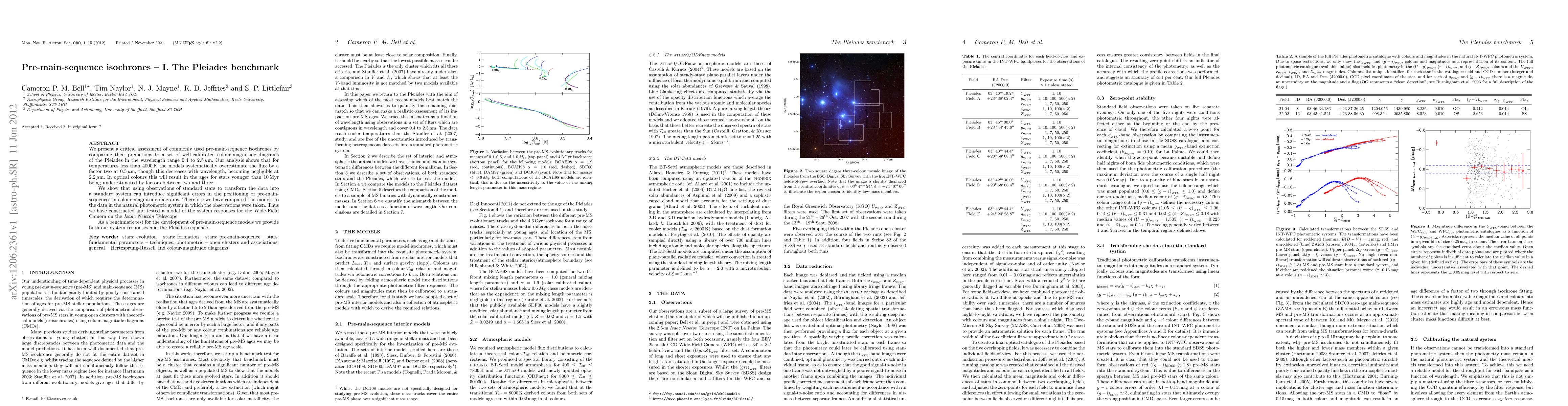 We present a critical assessment of commonly used pre-main-sequence isochrones by comparing their predictions to a set of well-calibrated colour-magnitude diagrams of the Pleiades in the wavelength range 0.4 to 2.5 microns. Our analysis shows that for temperatures less than 4000 K the models systematically overestimate the flux by a factor two at 0.5 microns, though this decreases with wavelength, becoming negligible at 2.2 microns. In optical colours this will result in the ages for stars younger than 10 Myr being underestimated by factors between two and three. We show that using observations of standard stars to transform the data into a standard system can introduce significant errors in the positioning of pre-main-sequences in colour-magnitude diagrams. Therefore we have compared the models to the data in the natural photometric system in which the observations were taken. Thus we have constructed and tested a model of the system responses for the Wide-Field Camera on the Isaac Newton Telescope. As a benchmark test for the development of pre-main-sequence models we provide both our system responses and the Pleiades sequence.