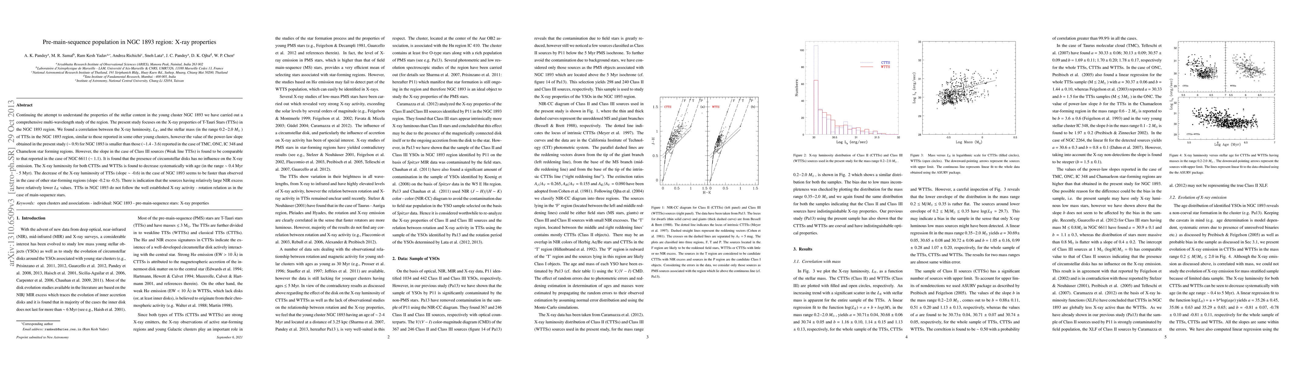 This study investigates the X-ray properties of T-Tauri Stars in the NGC 1893 region, revealing a correlation between X-ray luminosity and stellar mass, with a slope of ~0.9. The X-ray luminosity decreases systematically with age, showing a faster decline compared to other star-forming regions.
